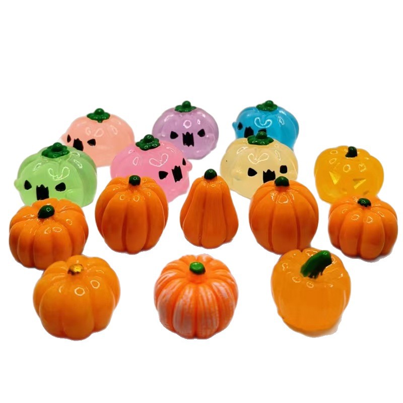 万圣节装饰布置材料恶魔南瓜树脂小摆件夜光南瓜玉米DIY饰品配件