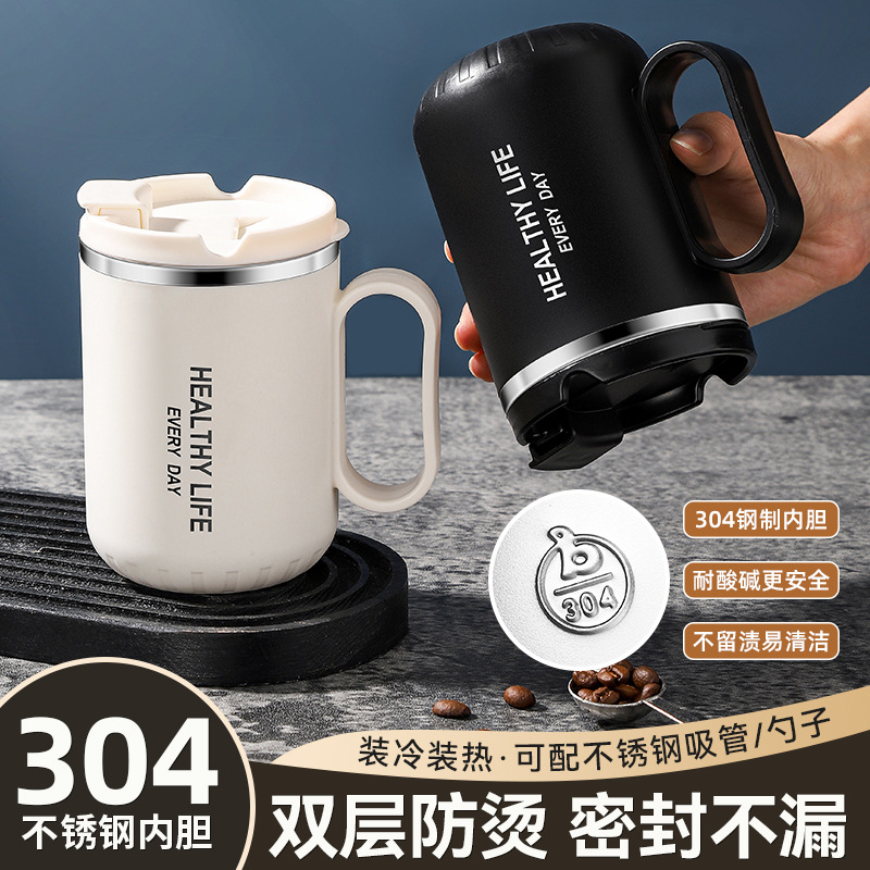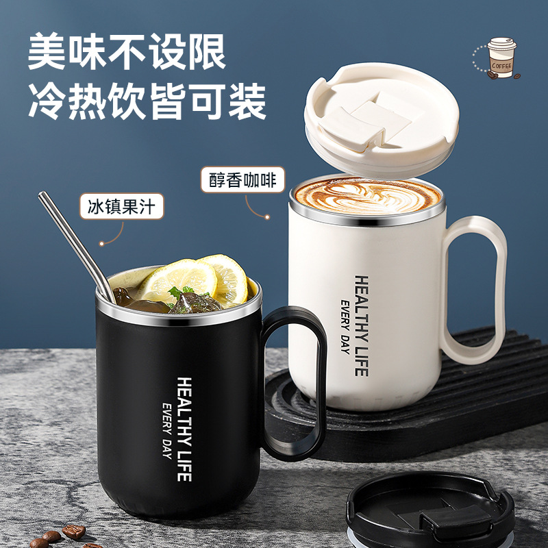 亚马逊双层304不锈钢马克杯带密封保温盖防烫防摔办公咖啡礼品杯