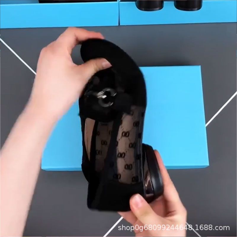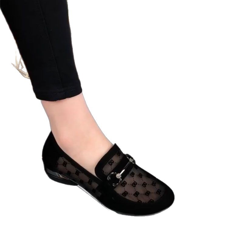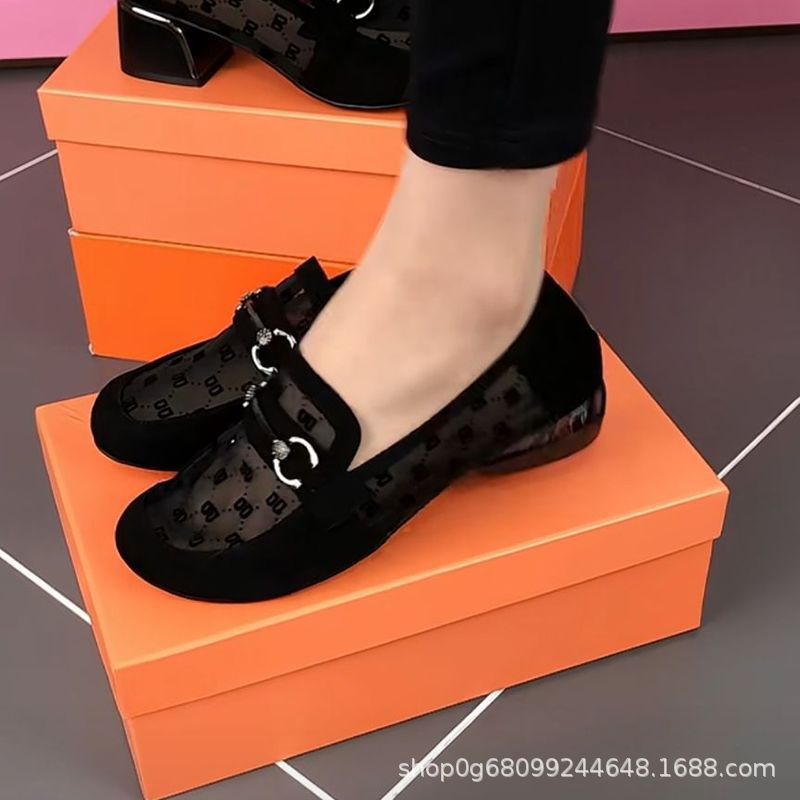 跨境软皮单鞋女2025新款夏季镂空网纱女鞋圆头粗跟豆豆鞋透气乐福