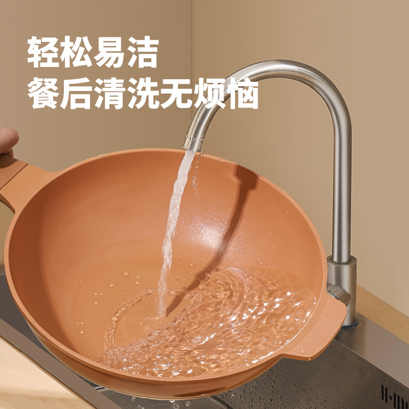 爆款陶土炒锅微压锅不粘锅大容量煎锅平底锅厨房炒菜锅礼品锅具