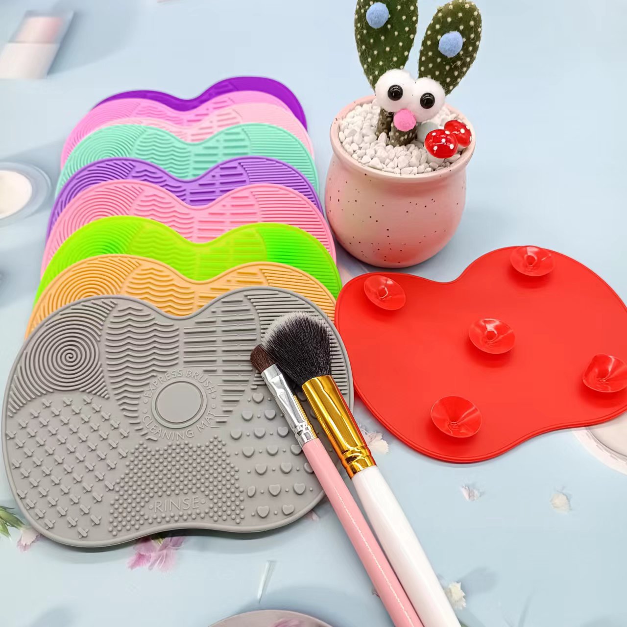 定制硅胶小苹果洗刷垫带吸盘苹果垫化妆刷清洁垫洗刷神器厂家批发