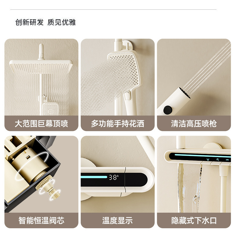 奶白智能恒温淋浴花洒套装沐浴数显家用淋雨浴室淋浴器极光氛围灯