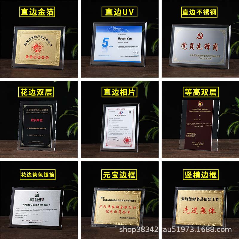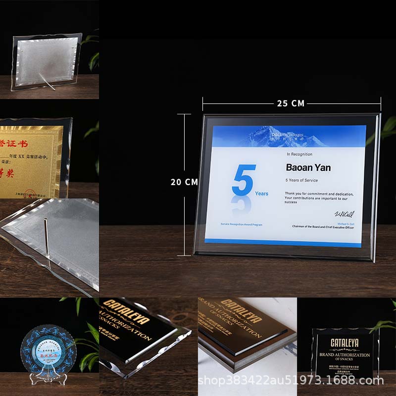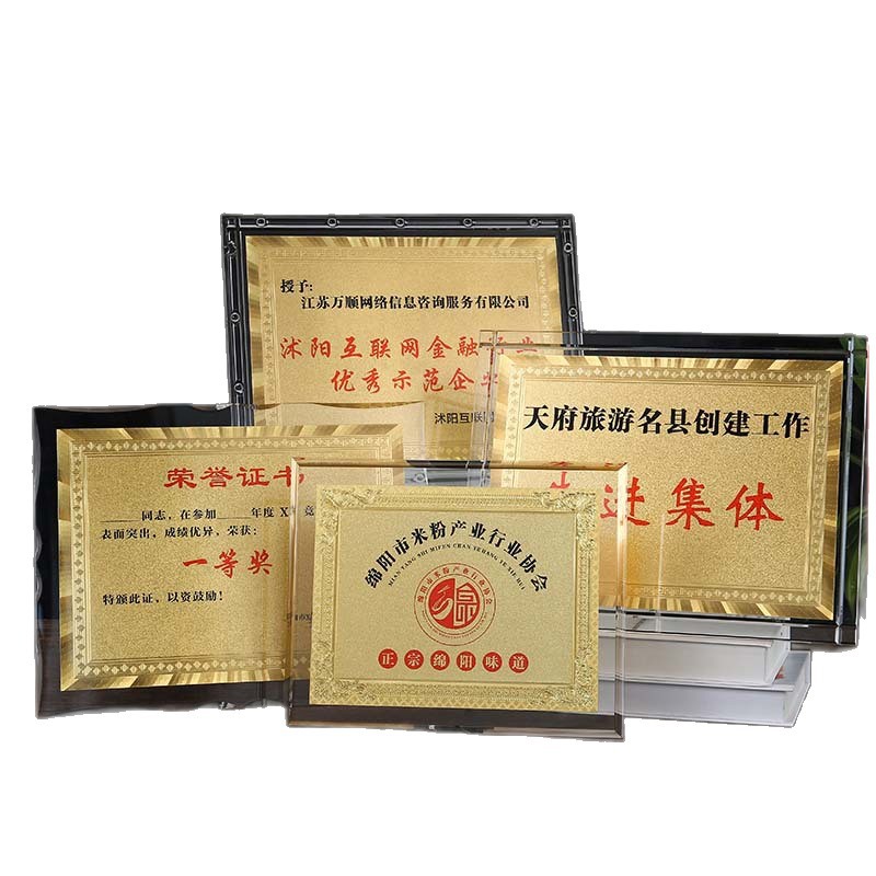 厂家定制透明亚克力授权牌奖牌金箔奖牌优秀奖状嘉奖花边挂牌立牌