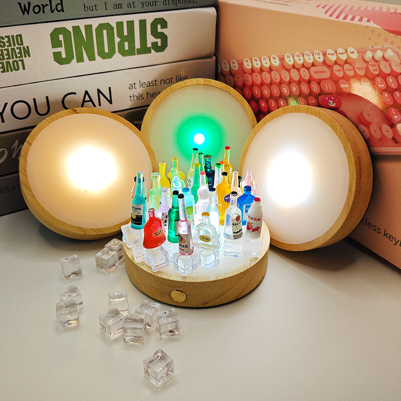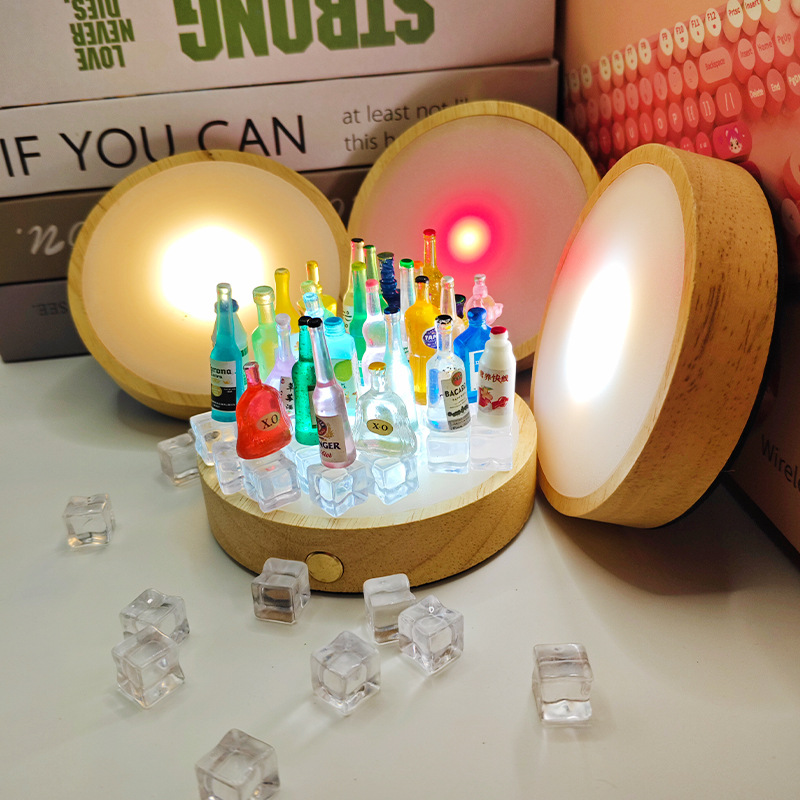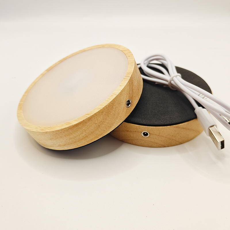 充电款圆形扩散板实木发光底座usb充电灯饰木底座七彩小夜灯底座