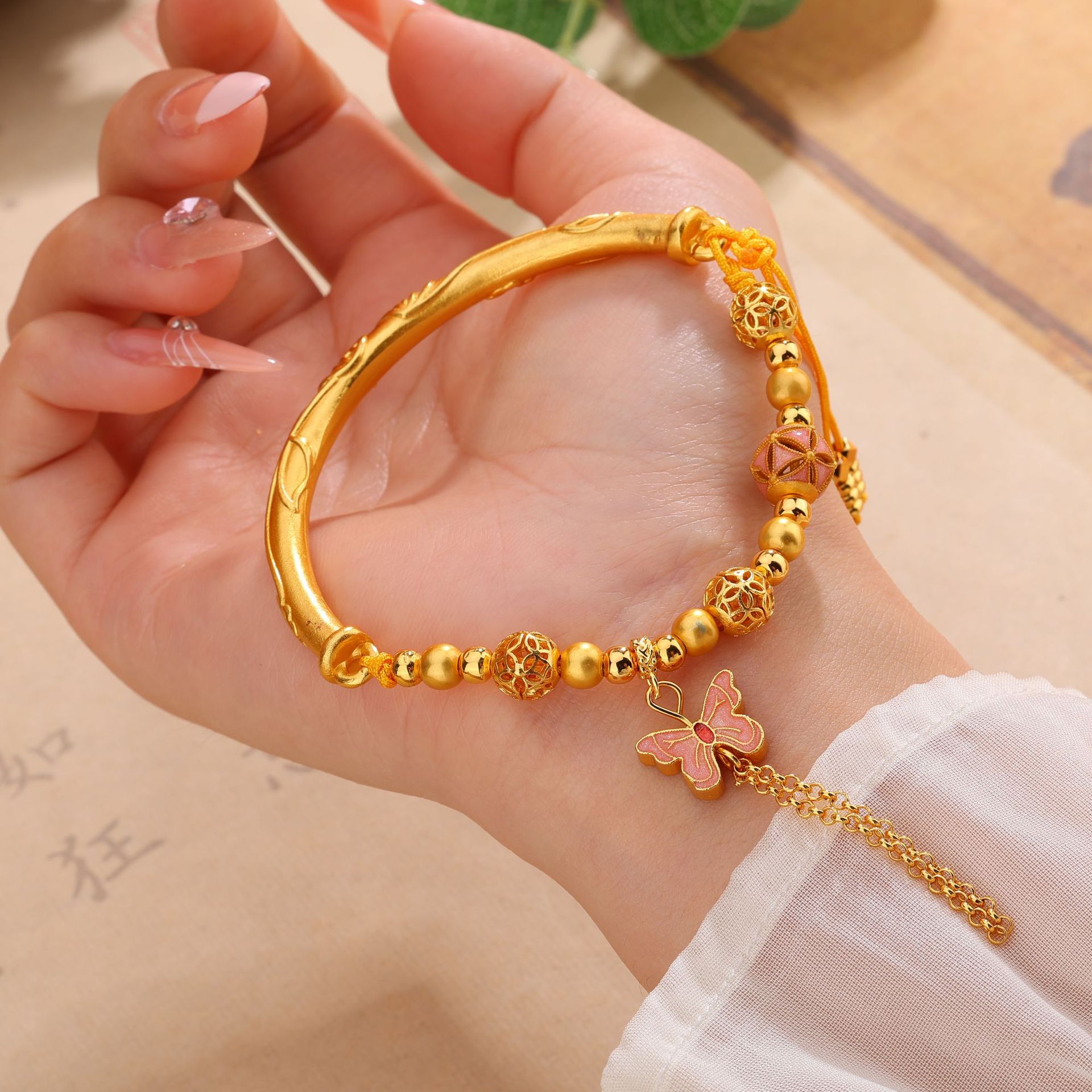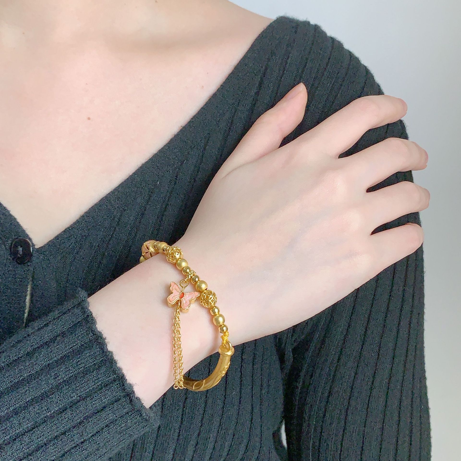 久不掉色越南沙金超仙~闭眼入蝴蝶半镯手链女ins小众设计气质手镯