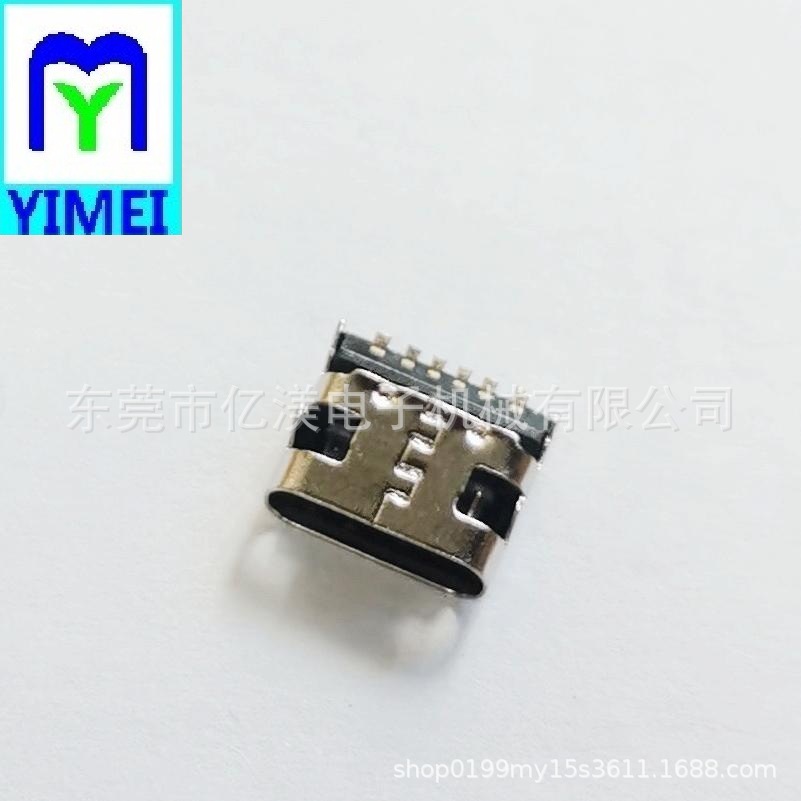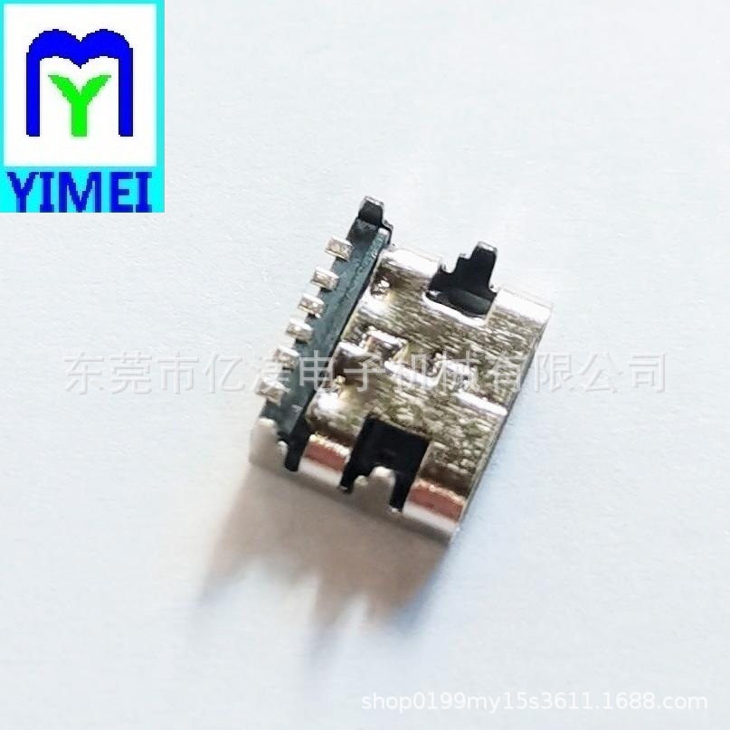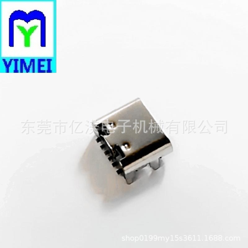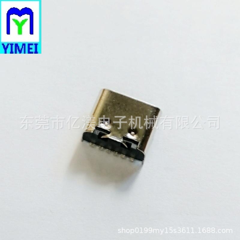 TYPE-C6P母座板上四脚插板SMT壳长7.35mmTC6P板上SMT型充电连接器