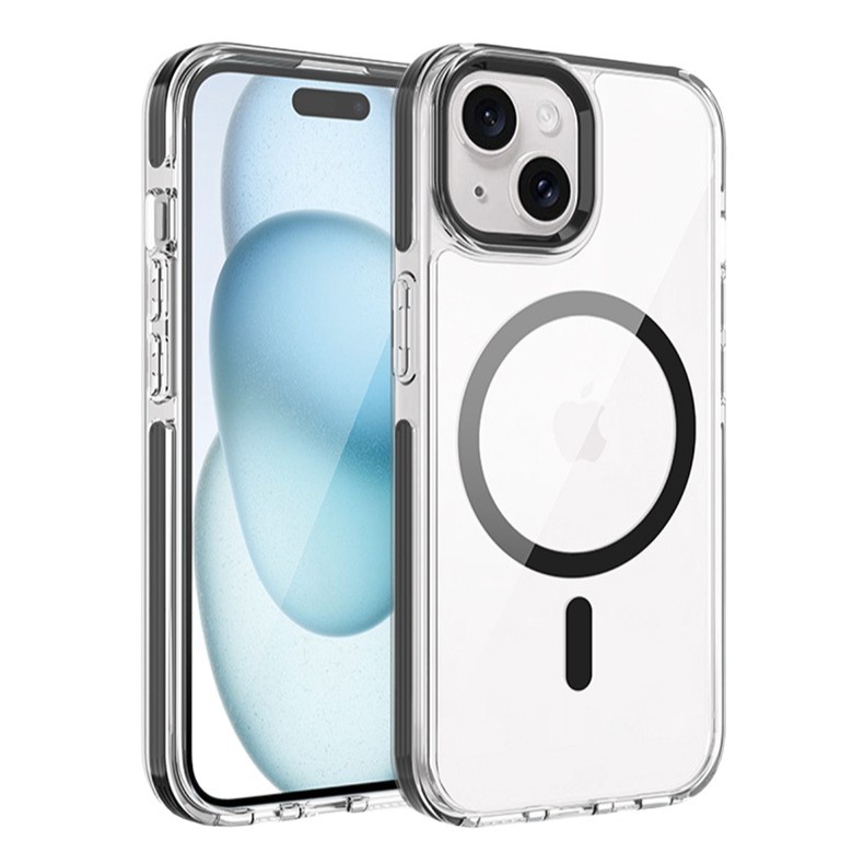 适用iPhone15透明磁吸防撞边框三合一GRS PC+TPU+TPE磁吸款手机套