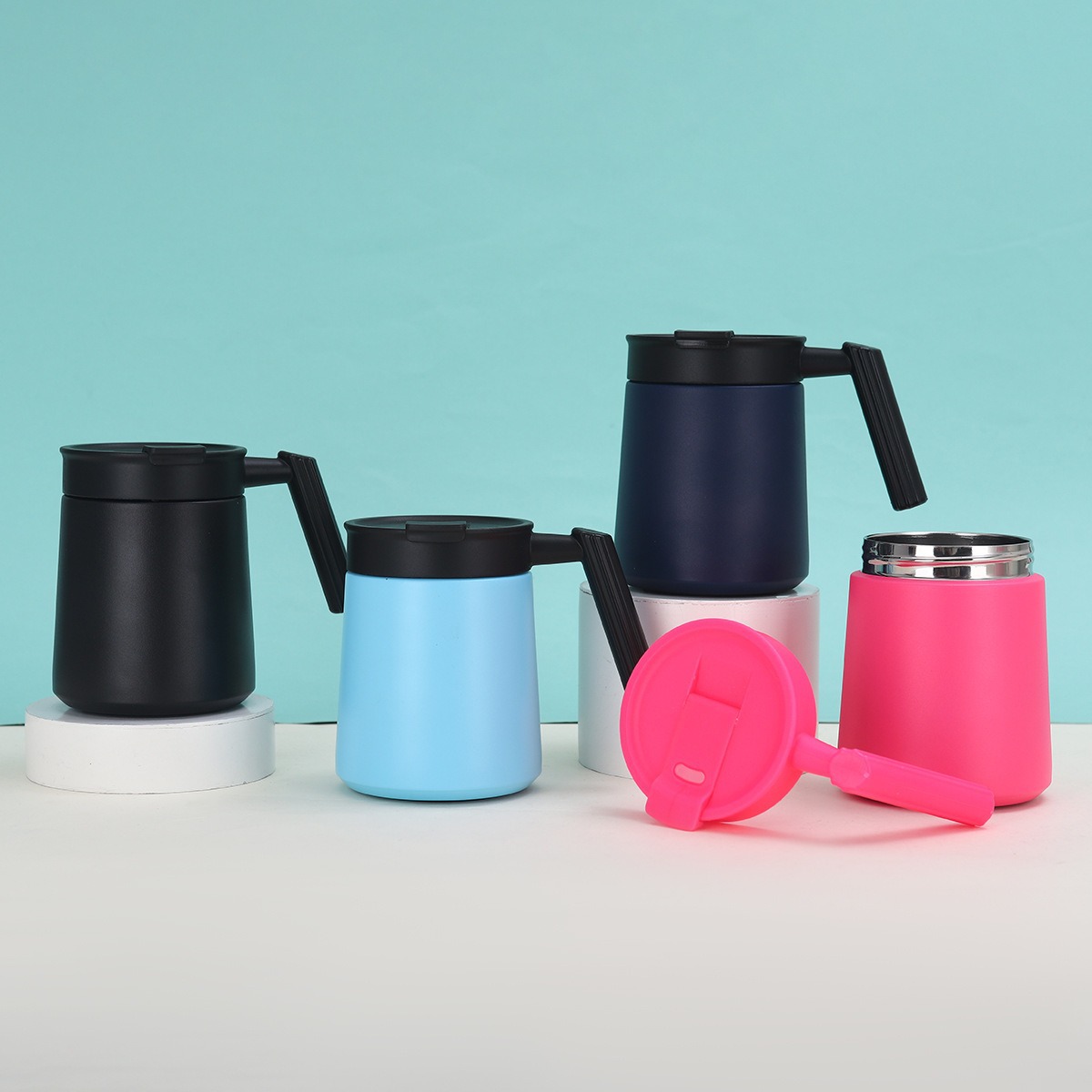 跨境304不锈钢保温杯纯色简约直饮杯居家办公手柄咖啡杯厂家批发