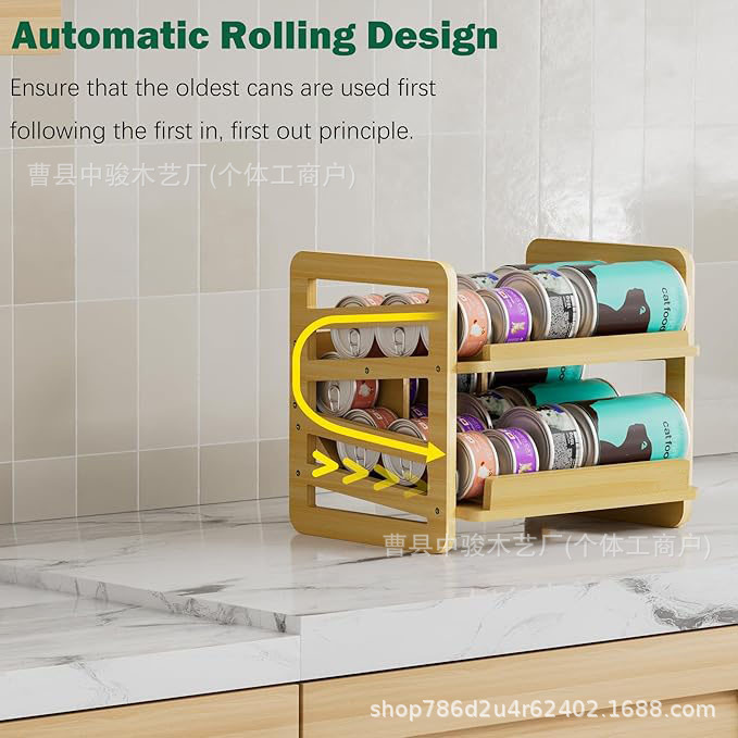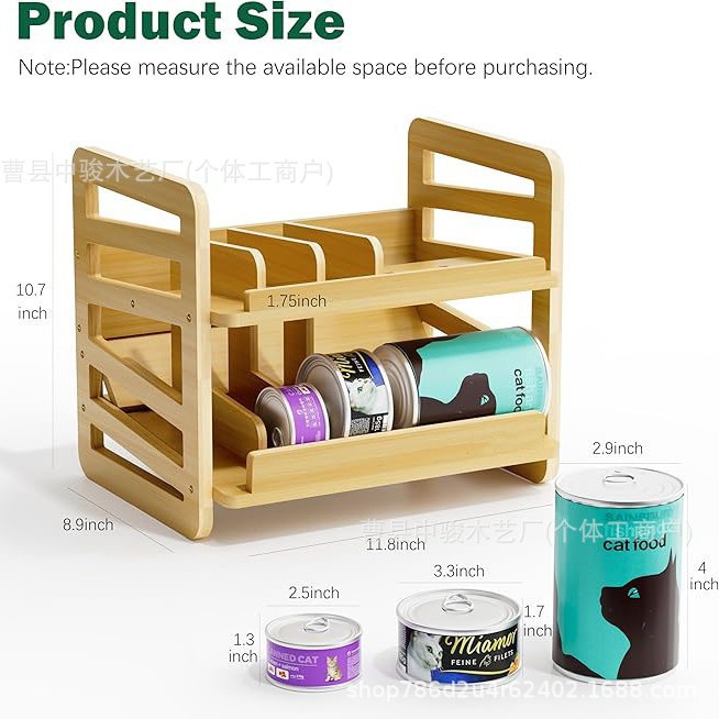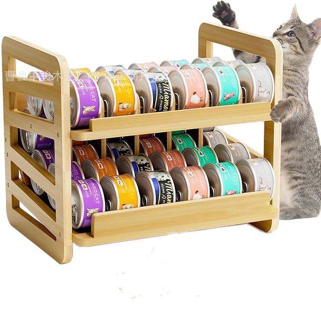 新款竹木多层宠物罐头架家用台面猫狗食品整理架可拆卸猫粮收纳架