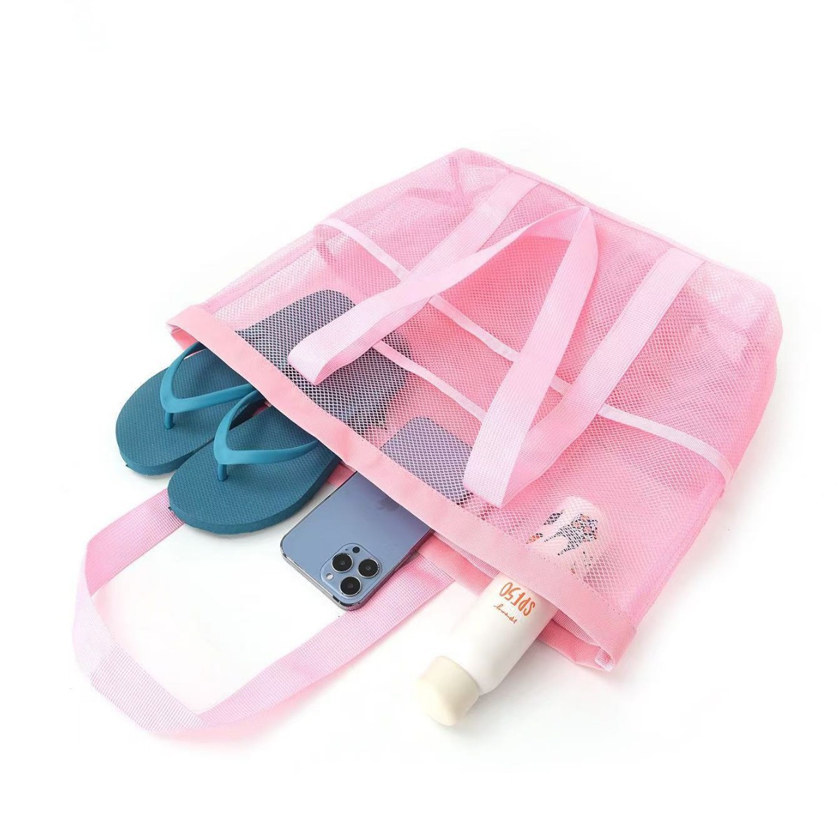 现货亚马逊款大容量玩具 手提单肩沙滩包网纱洗浴包9袋旅行沙滩袋