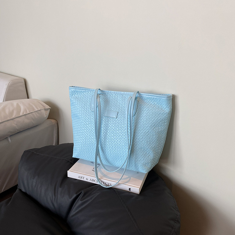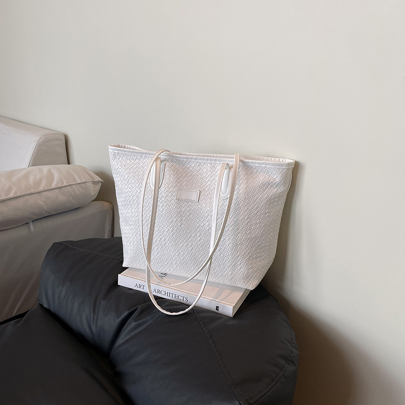 2025新款休闲时尚通勤休闲简约时尚感复古大容量编织纹托特单肩包