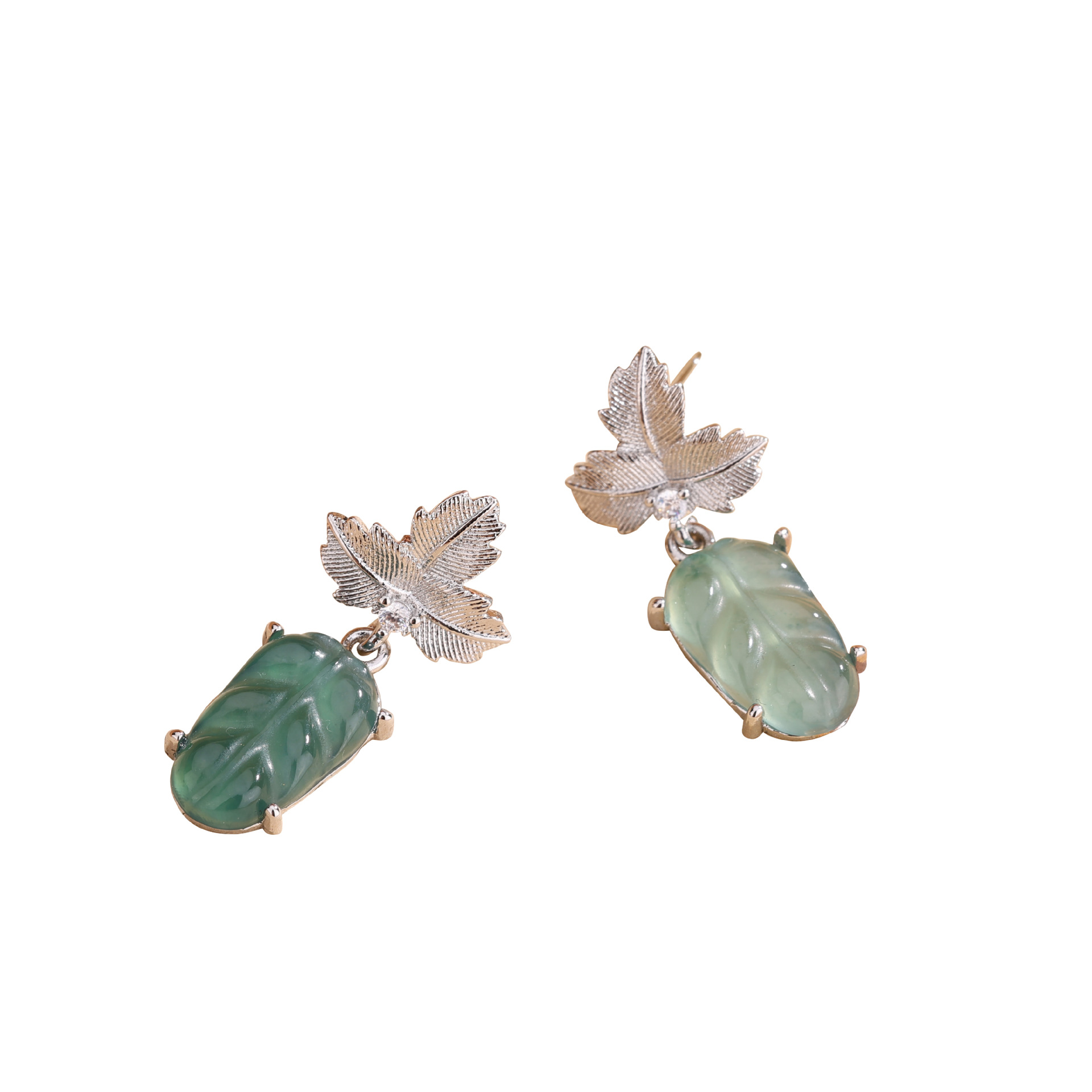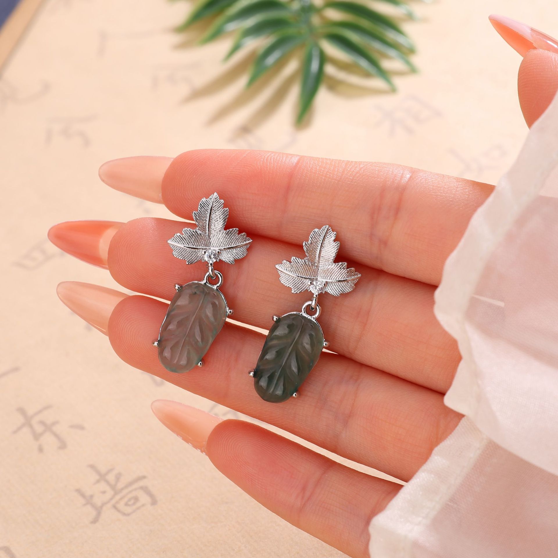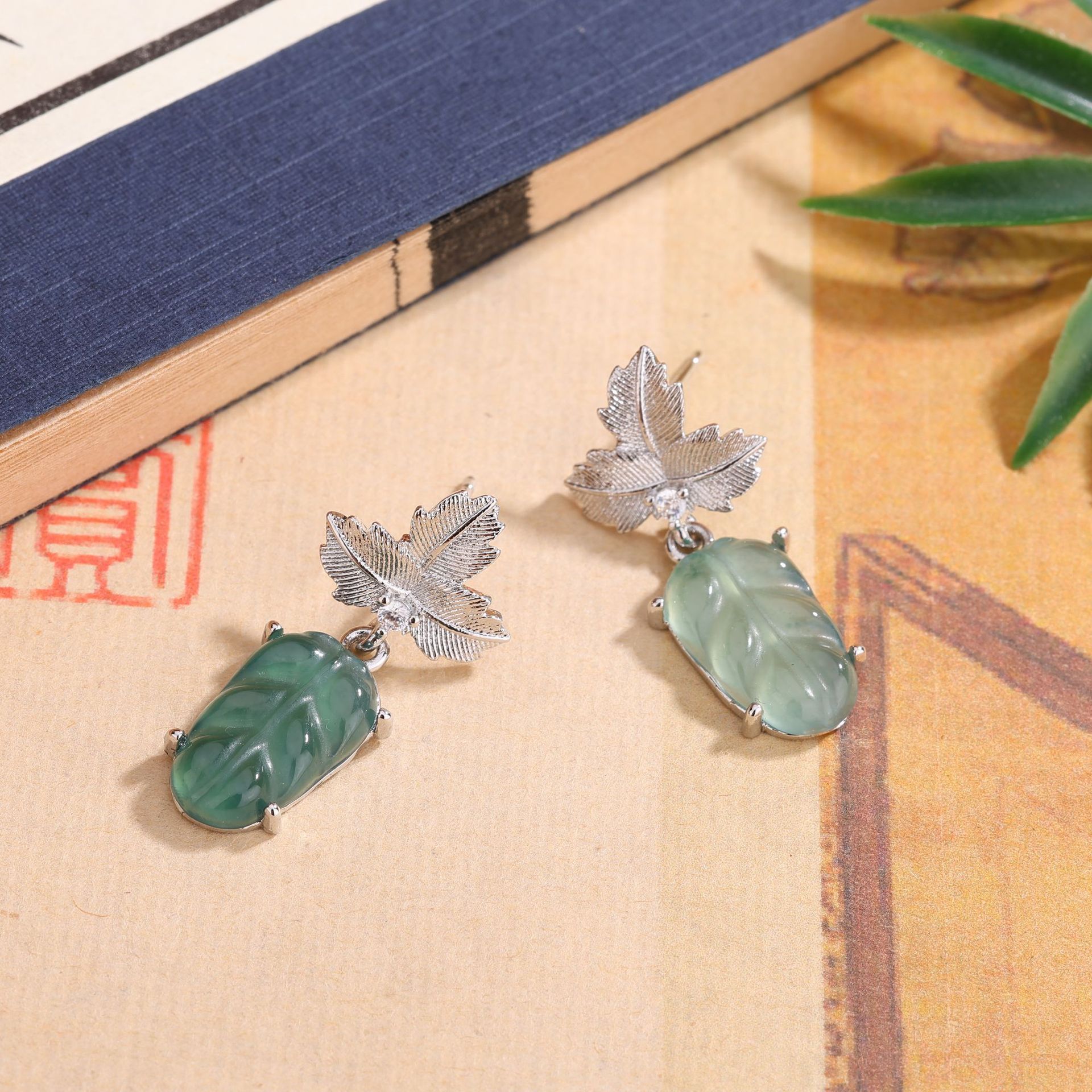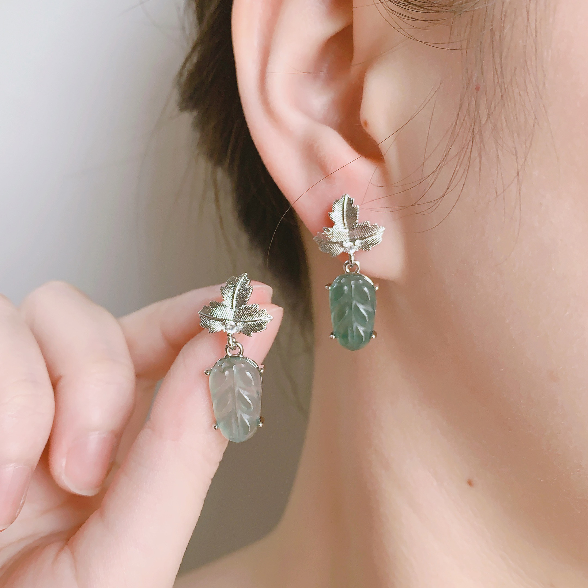小红书实拍爆款天然蓝水翡翠耳环S925纯银新中式叶子轻奢风耳饰品