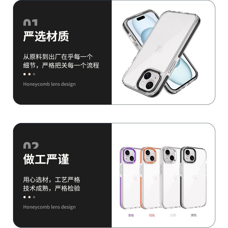 适用苹果15promax手机壳iphone16防摔手机壳GRS PC+TPU+TPE透明款