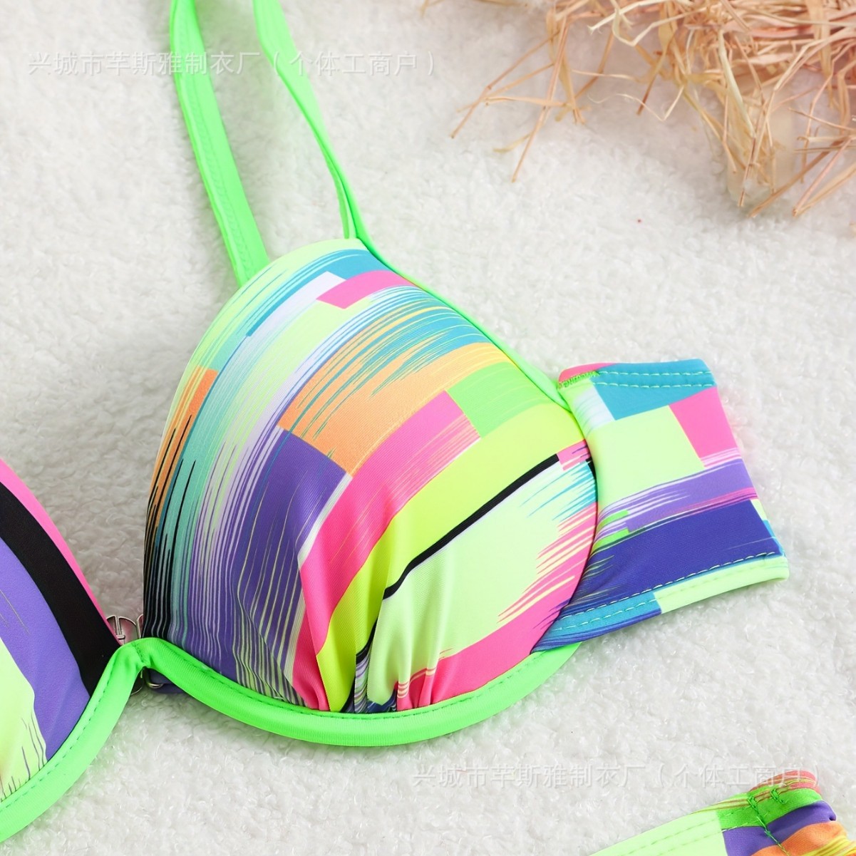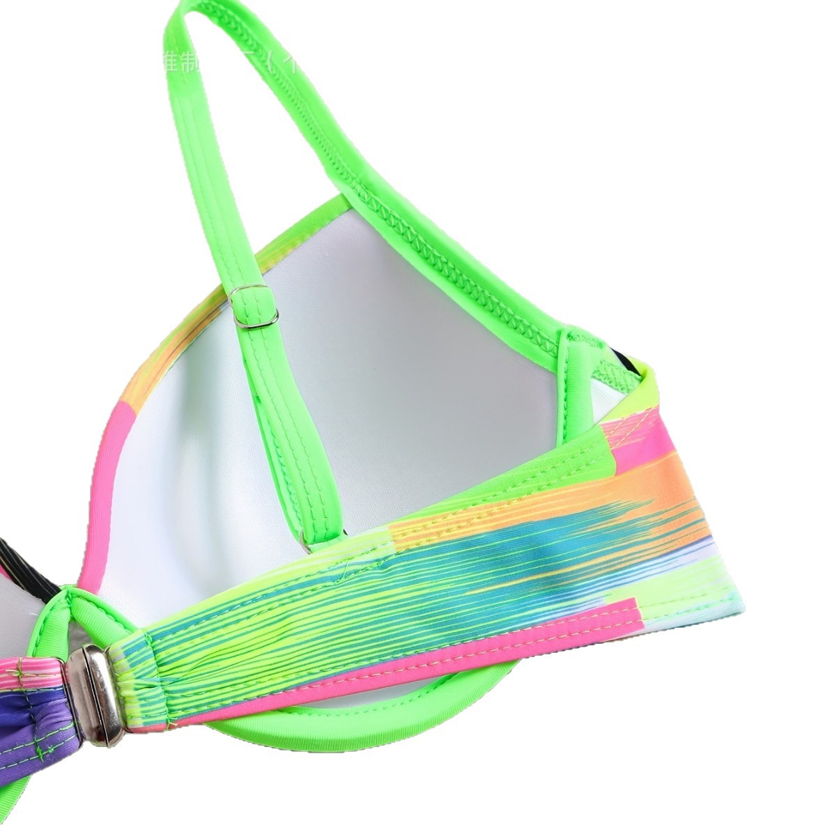 2025新款彩虹条比基尼硬杯钢托款泳衣女套装