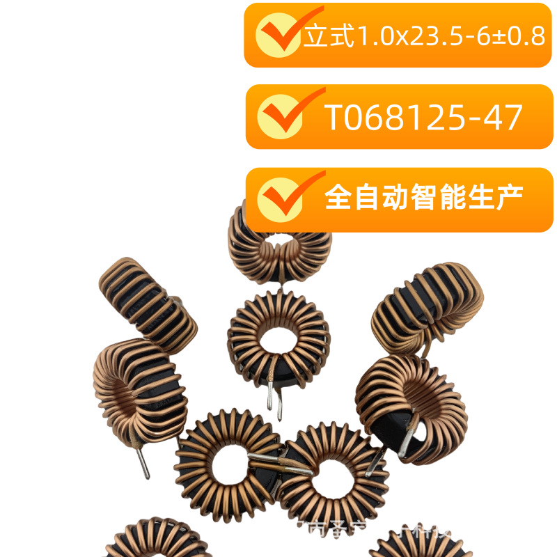 立式1.0x23长6.T068125-47磁环电感抗干扰环形共模铁硅铝电感