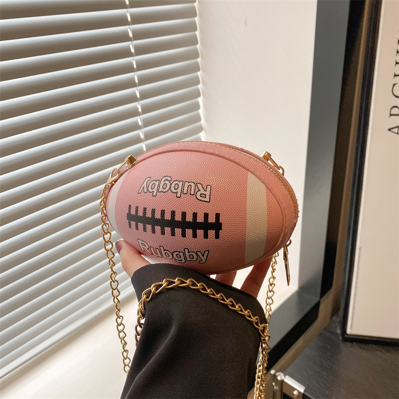 新款撞色字母橄榄球圆筒型包包时尚清新甜美日常搭配PU单肩斜挎包