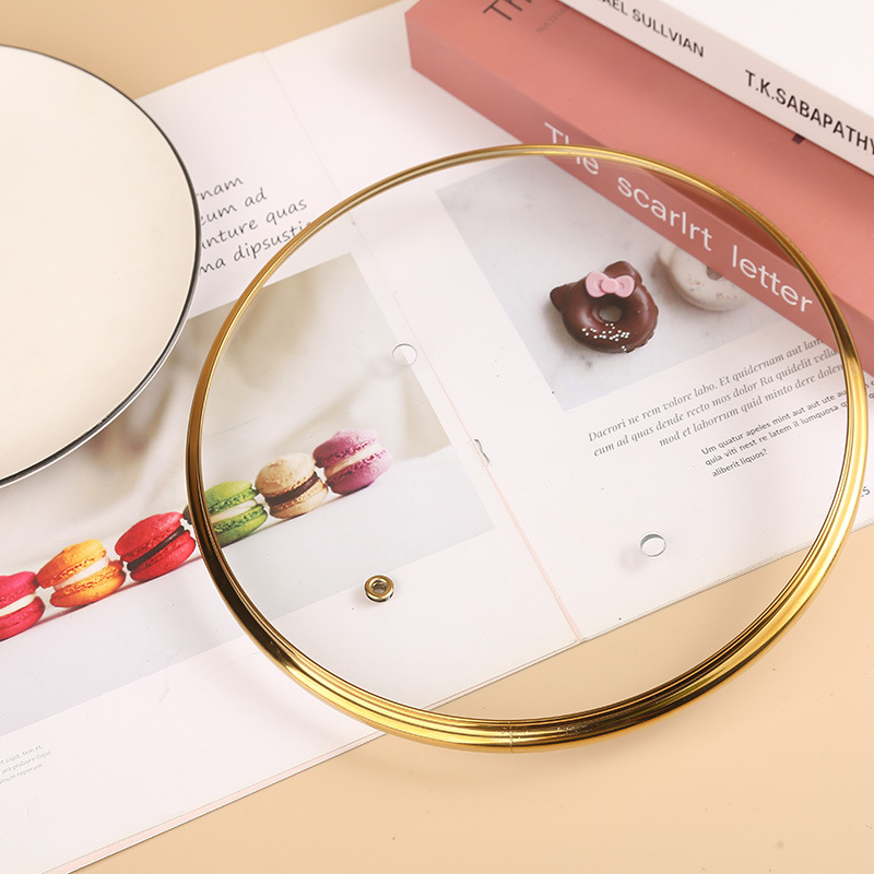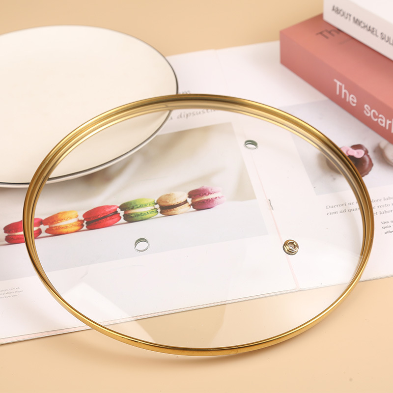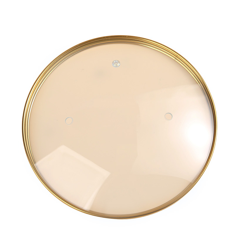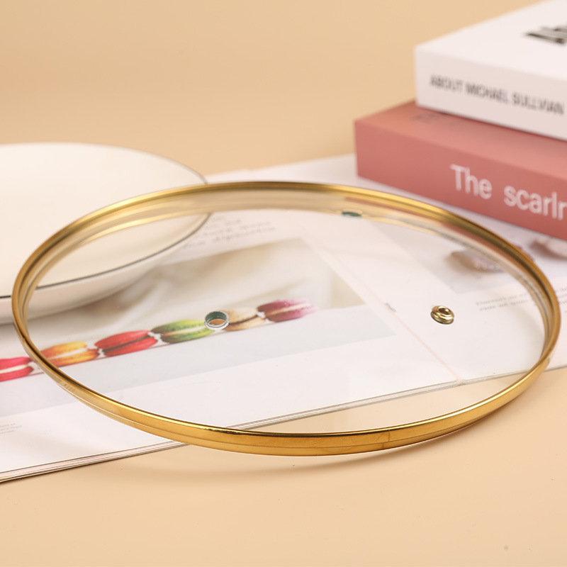 定制金色双孔G型宿舍雪平锅盖奶锅不锈钢裹边钢化玻璃盖煎锅制作