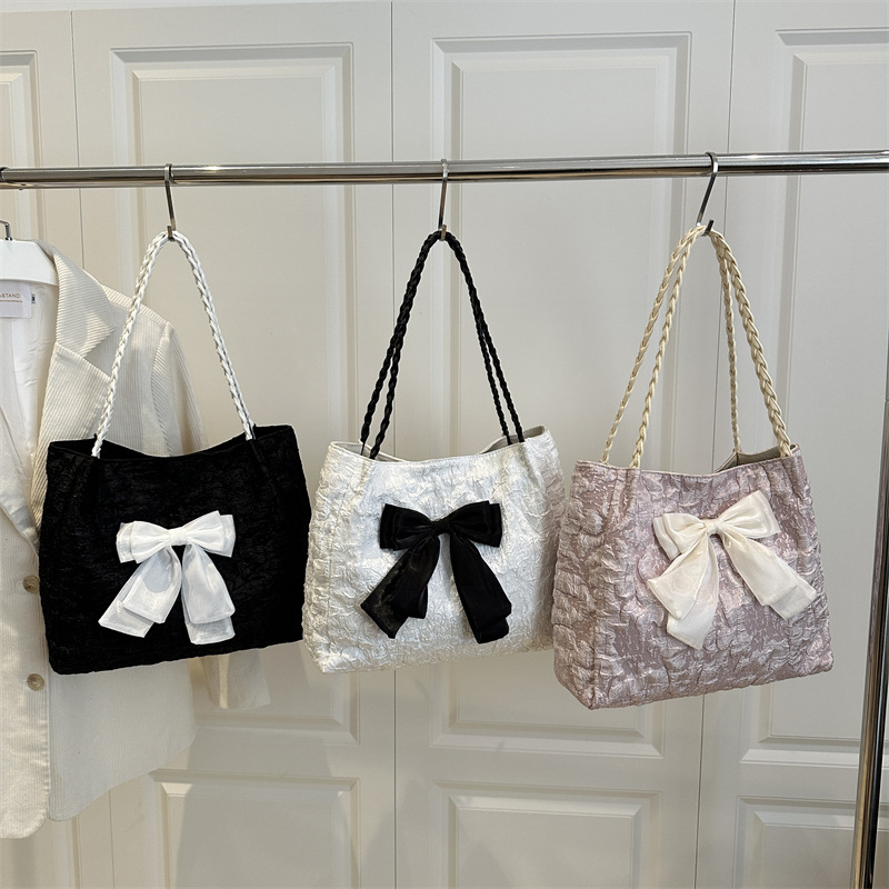 蝴蝶结大容量包包女百搭托特包2025新款小众流行上课通勤单肩大包