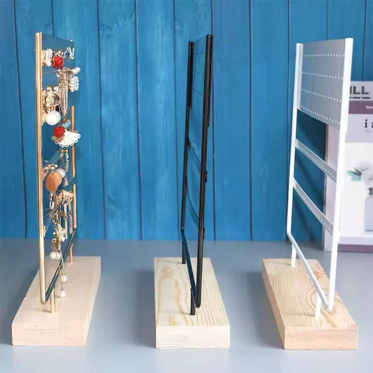 铁艺桌面式实木底耳环耳钉收纳架,耳坠梳妆台首饰盒创意收纳架