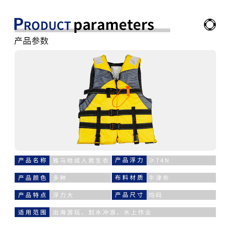 雅马哈成人救生衣大浮力安全背心专业钓鱼车载便捷式求生游泳救生
