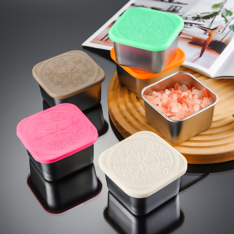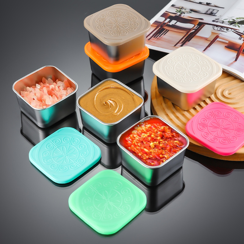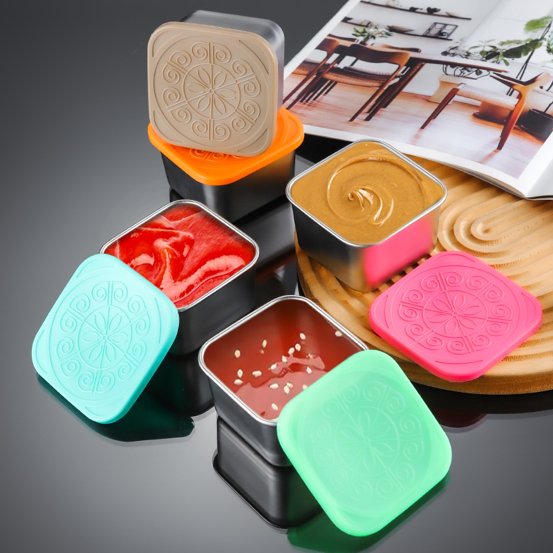 304不锈钢蘸料杯跨境沙拉酱容器带盖密封方形零食盒户外蘸料碟子