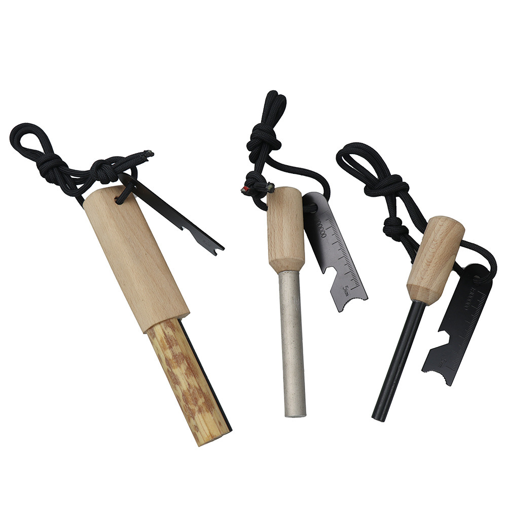 便携户外打火石野营装备野外生存镁棒取火器木柄打火棒多功能刮刀