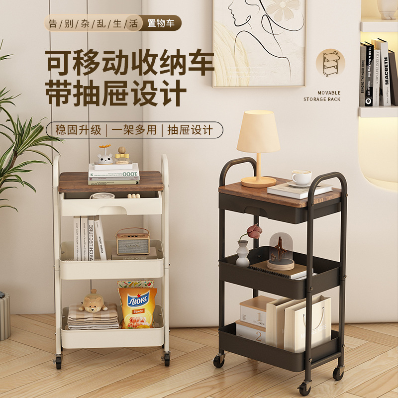 卧室零食收纳架万向轮可移动收纳车厂家批发厨房客厅小推车置物架
