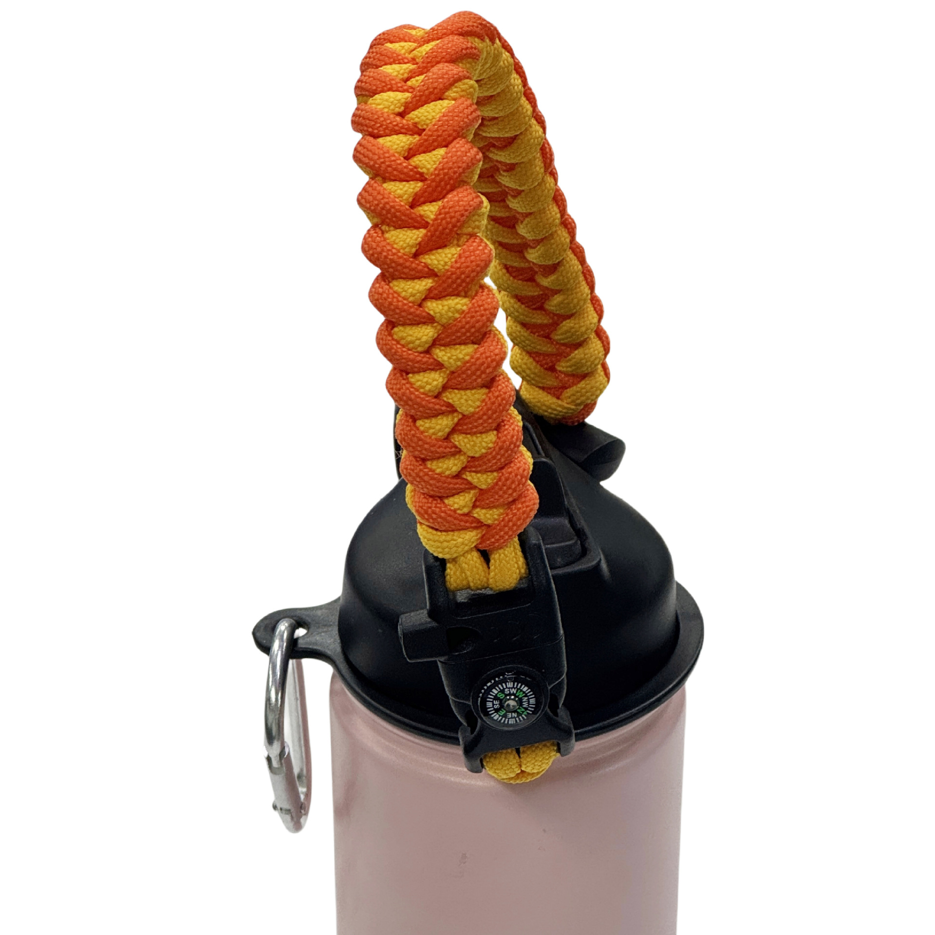 户外多功能水壶提手太空鱼骨伞绳水壶提手运动水杯手提式带指南针