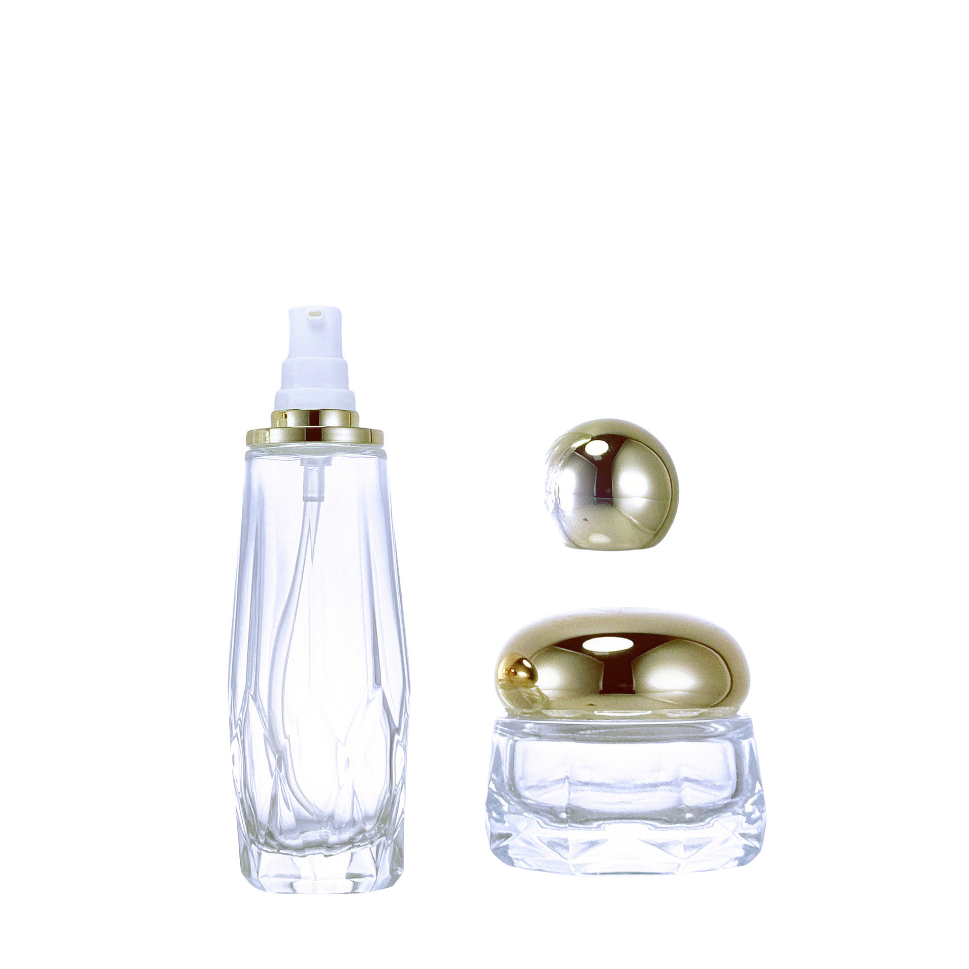现货金色菱形100ml乳液瓶化妆品套装瓶玻璃分装瓶50g面霜瓶球形盖