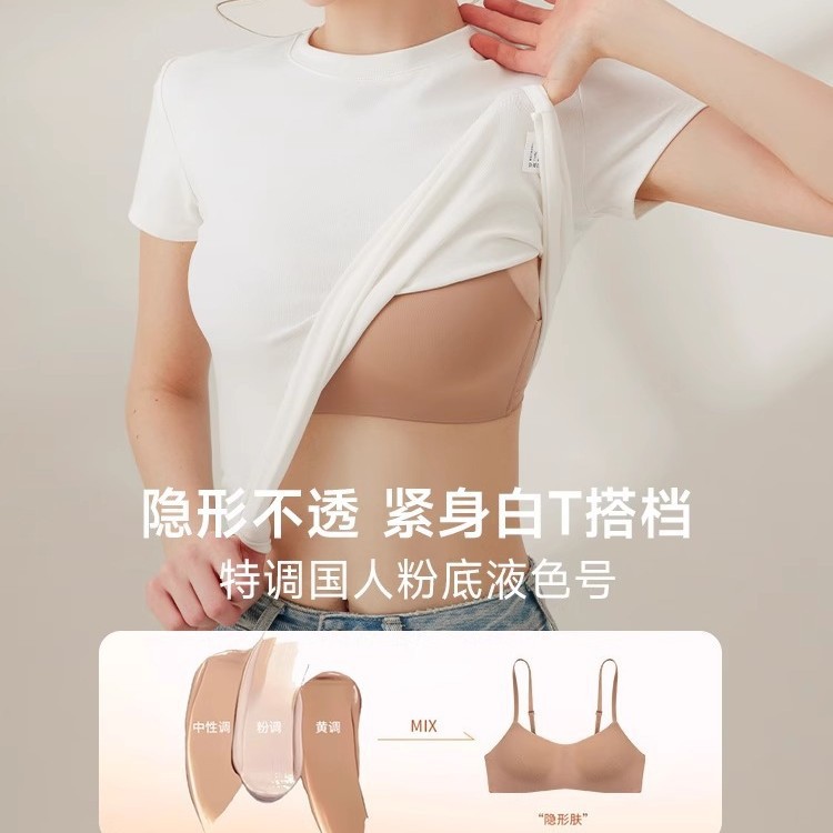 粉底液内衣女肤色隐形无痕小胸不空聚拢平胸低胸罩半杯薄款夏透气