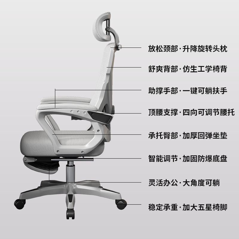颜色 | 【灰框灰网-四级气杆+抑菌乳胶款】四维腰托+头枕+逍遥+脚踏 | | 框架 | 金属骨架 |