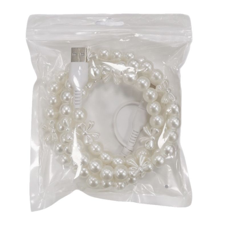 创意礼品时尚手工串珠线 一拖二珍珠蝴蝶结彩珠数据线二合一定制