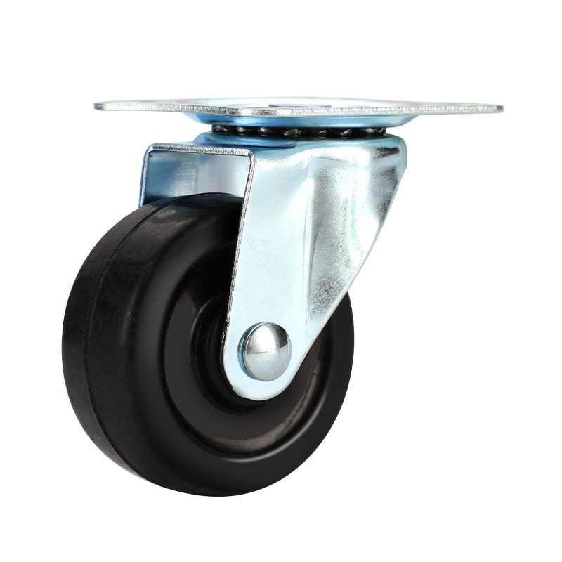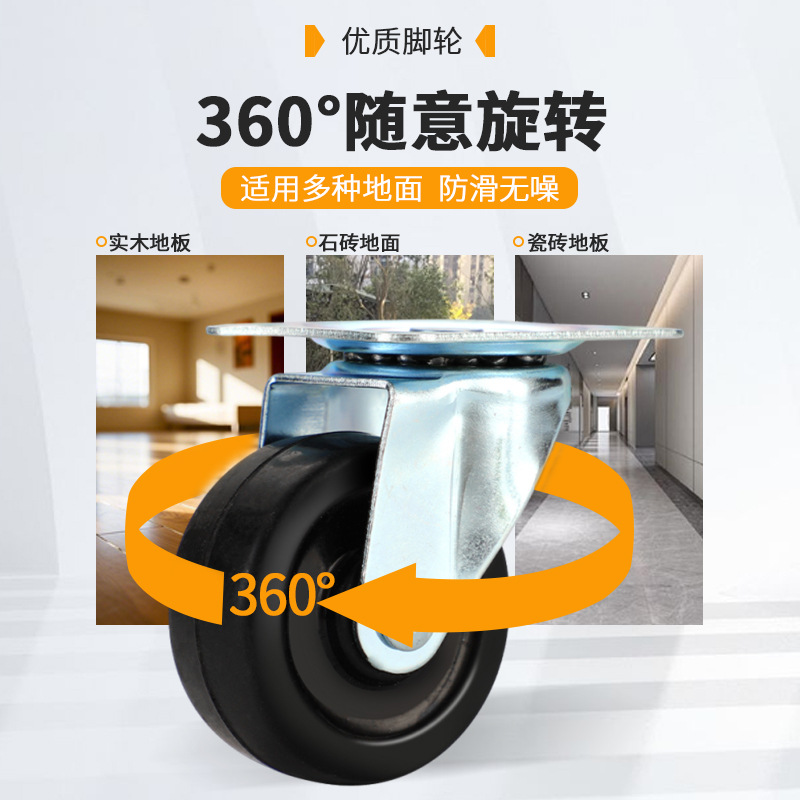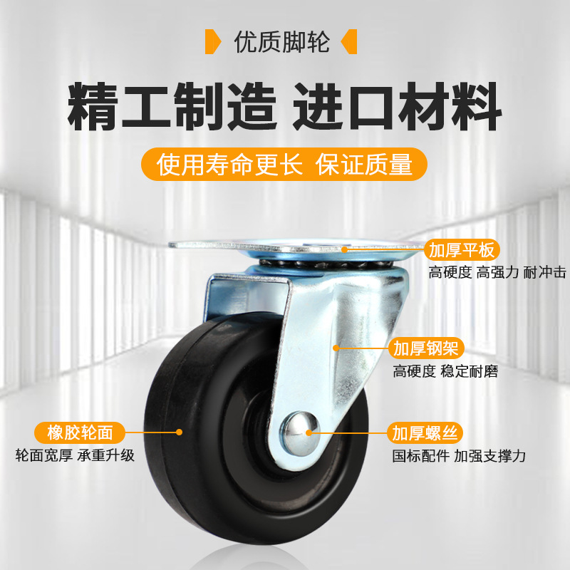 轻型脚轮1寸黑色橡胶万向轮3寸平底丝杆刹车轮手推厨房餐车家具轮
