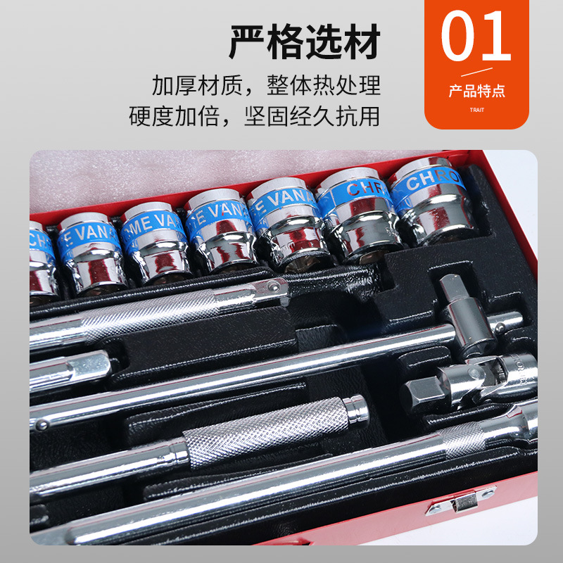 汽修工具套装修修车套筒扳手 24件套套筒组套工具L杆棘轮扳手批发