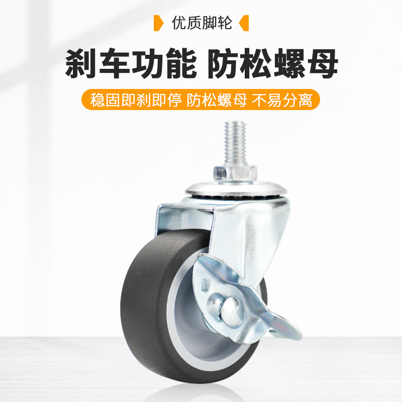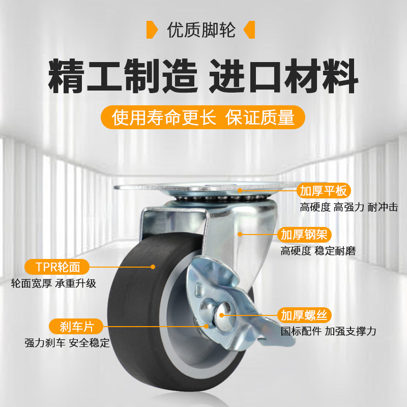 tpr脚轮厂家静音万向轮1寸2寸带刹车边刹轻型工具车板车家具轮子