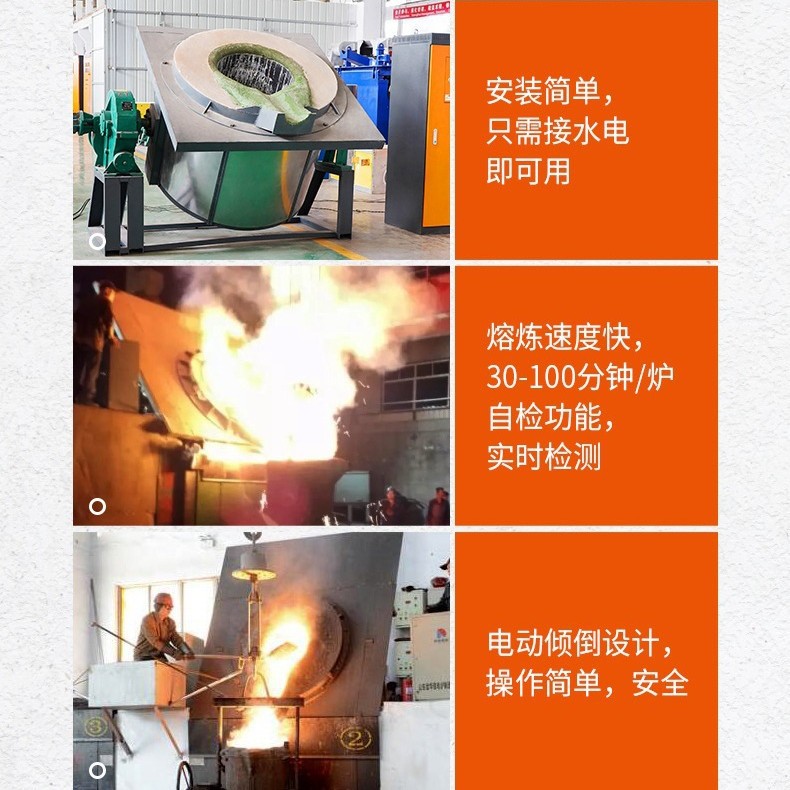铝合金冶炼生产设备铝锭熔炼再生铝加工快速熔化倾倒式中频感应炉