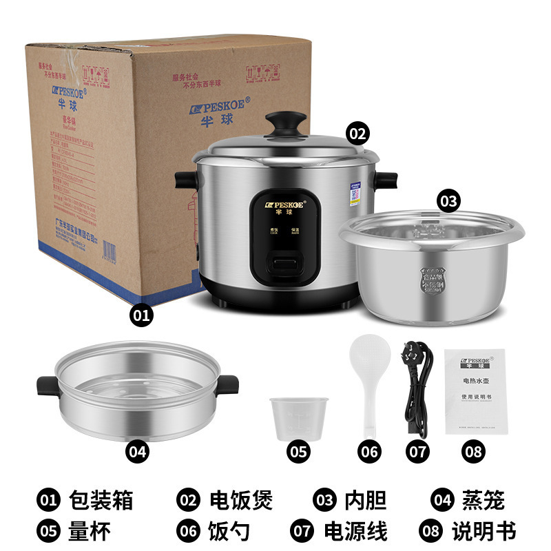 | 颜色 | 白钢500W(3L)豪华+304钢胆+蒸笼 | 颜色 | 白钢700W(4L)豪华+304钢胆+蒸笼 |