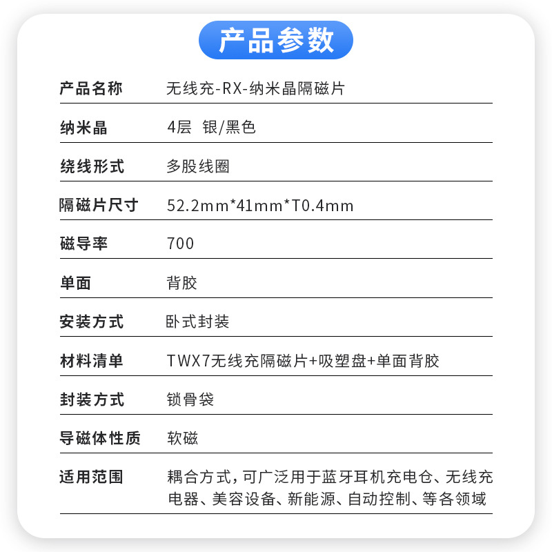 规格无线充纳米晶