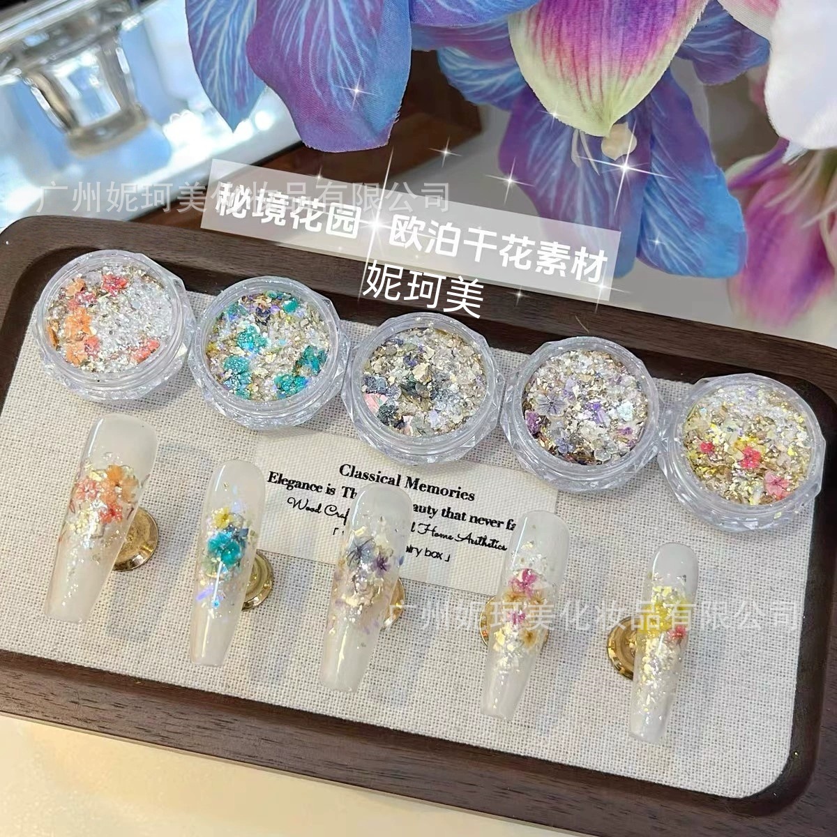 美甲秘境花园欧泊粉梦幻七彩仙女云锦干花闪粉指甲亮片装饰品批发