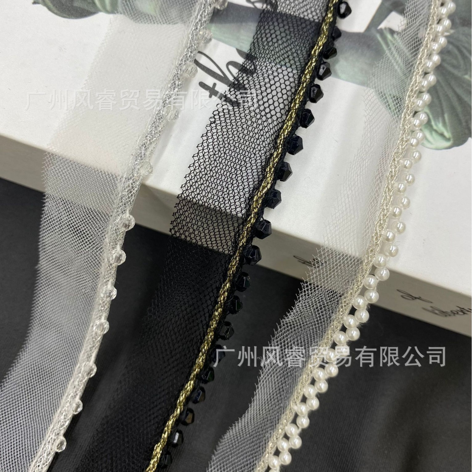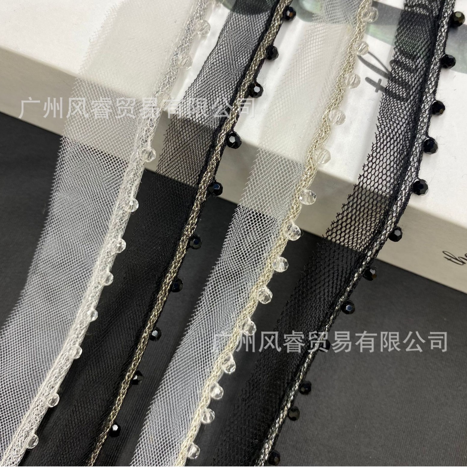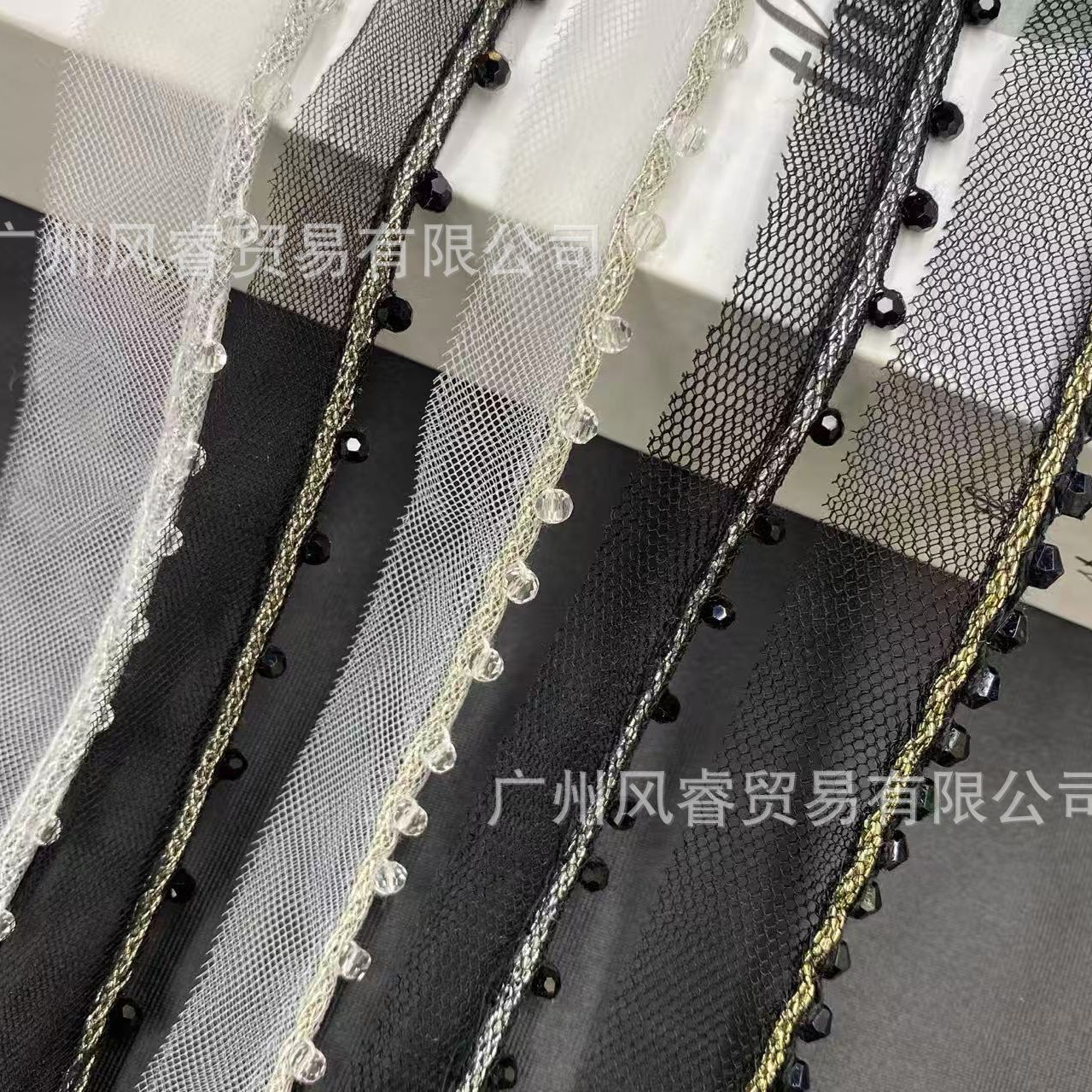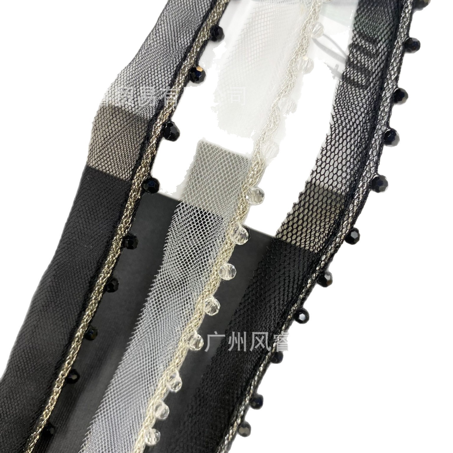 金银丝单边网纱水晶花边手工钉珠织带服装装饰DIY花边辅料
