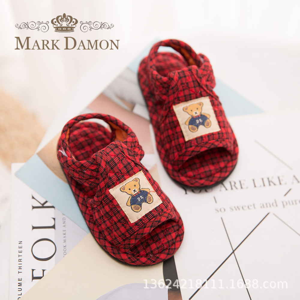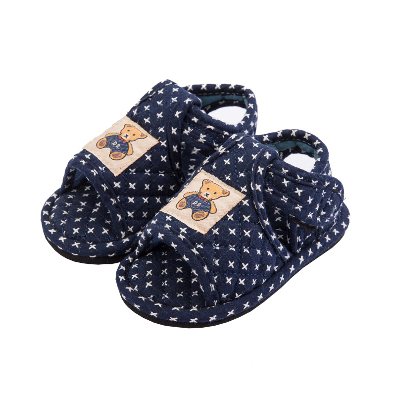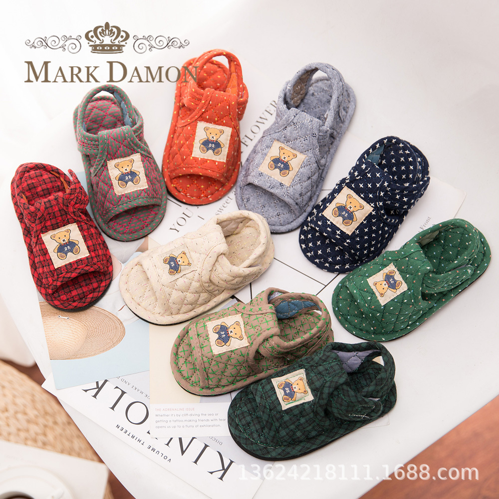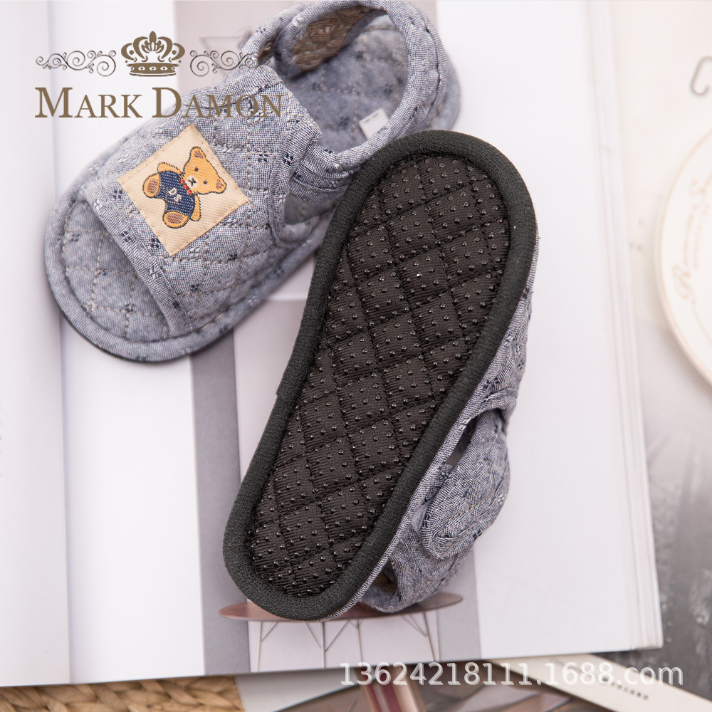 批发春夏季居家儿童学步鞋室内静音纯棉布底软底实地板拖鞋布艺