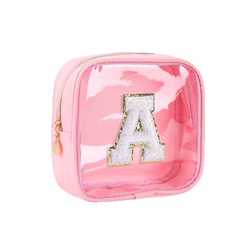亚马逊跨境刺绣字母化妆包PVC透明洗漱包高颜值手拿包旅行收纳包