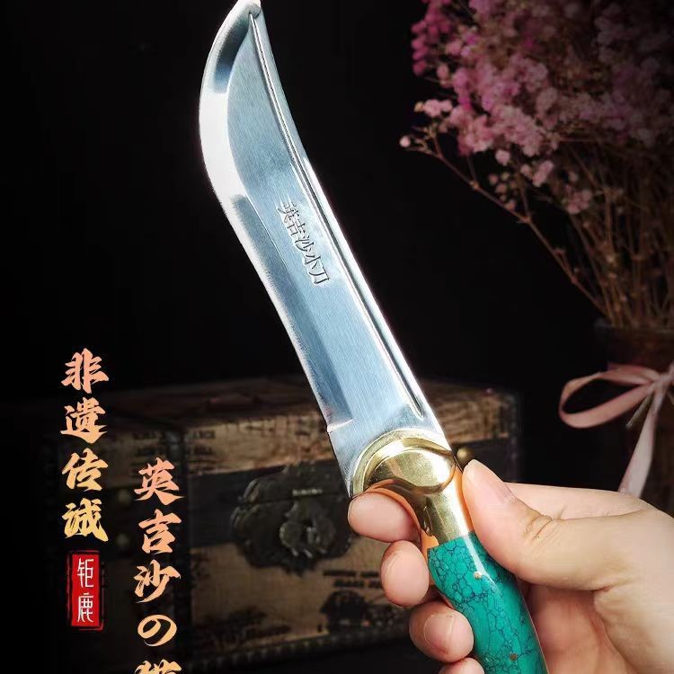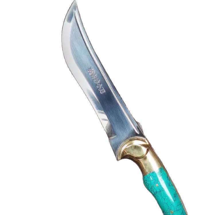 新疆英吉沙手工轴承钢一体黄铜彩贝壳制作小刀
