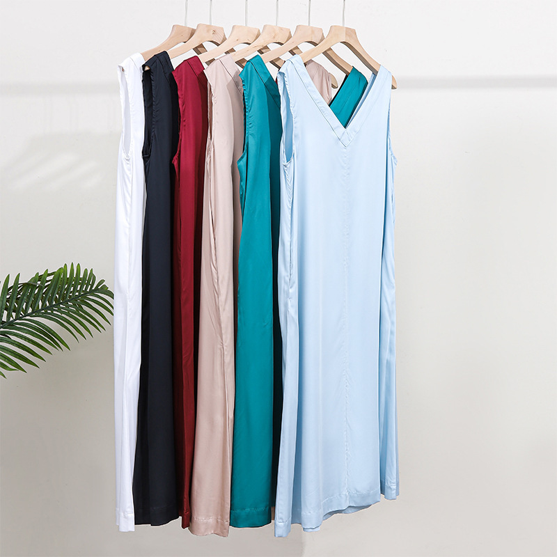 跨境法式气质棉绸女士连衣裙薄款家居裙打底裙人造棉长裙子睡裙