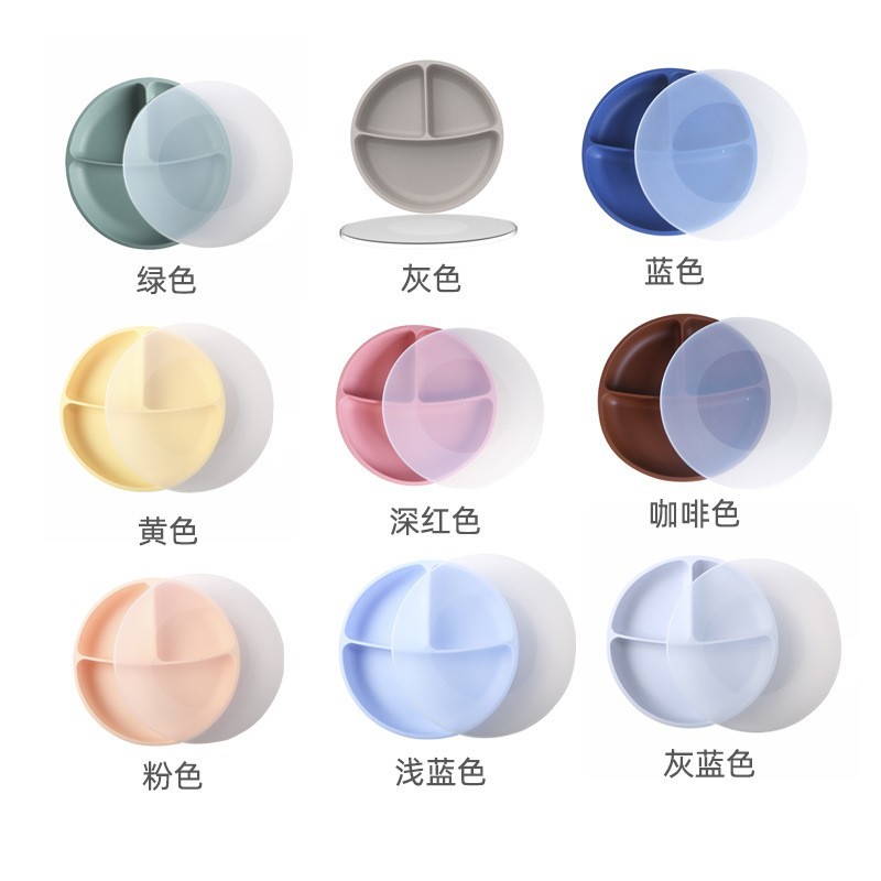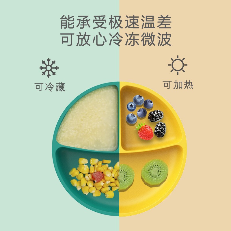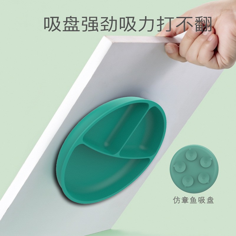 儿童餐盘硅胶吸盘式宝宝参评那辅食碗分隔餐盘防摔食品级厂家批发