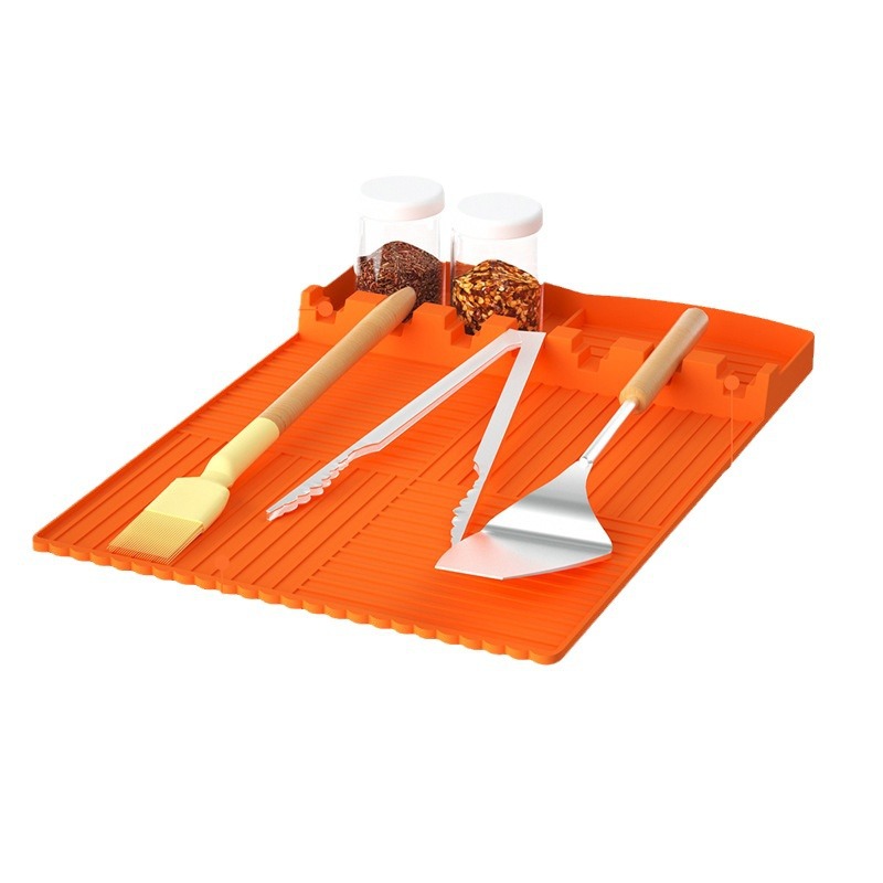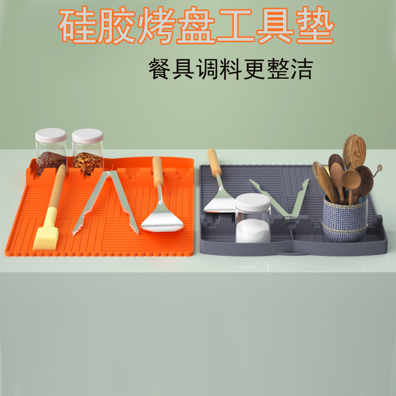 跨境新品烧烤炉硅胶侧架垫烤盘保护垫多功能黑石硅胶烤炉工具垫