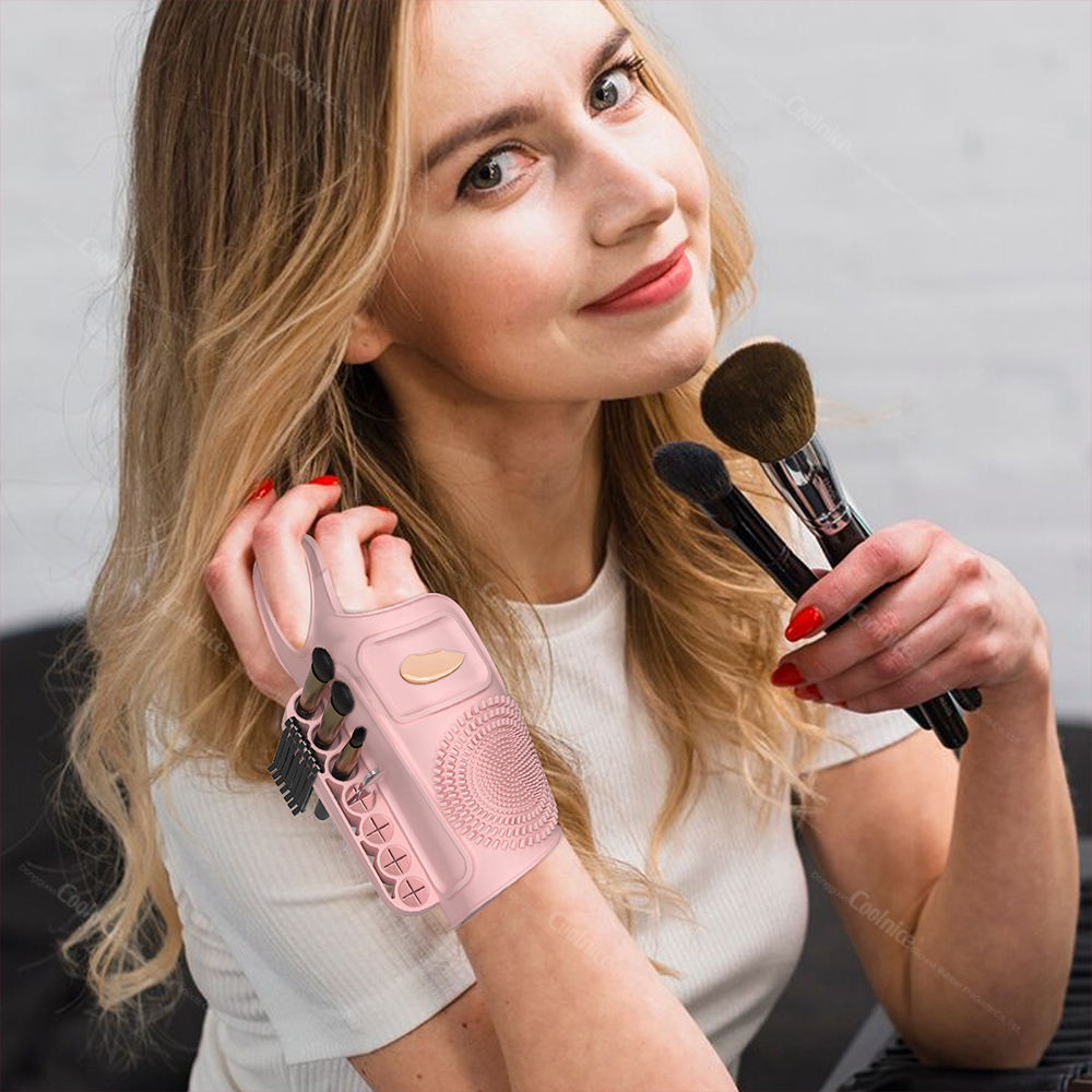跨境爆品硅胶化妆辅助手带多功能化妆刷美妆工具带清洁区手腕带