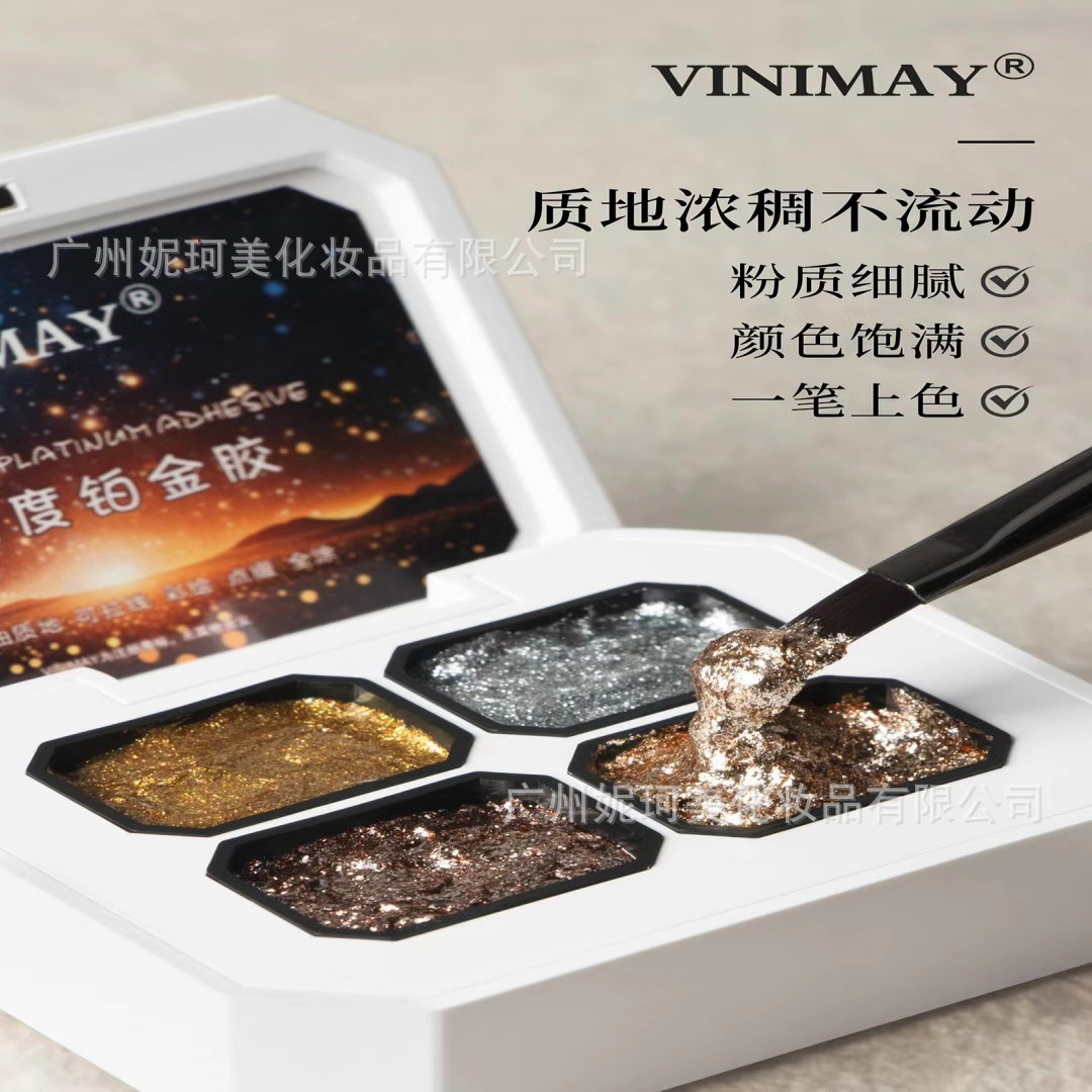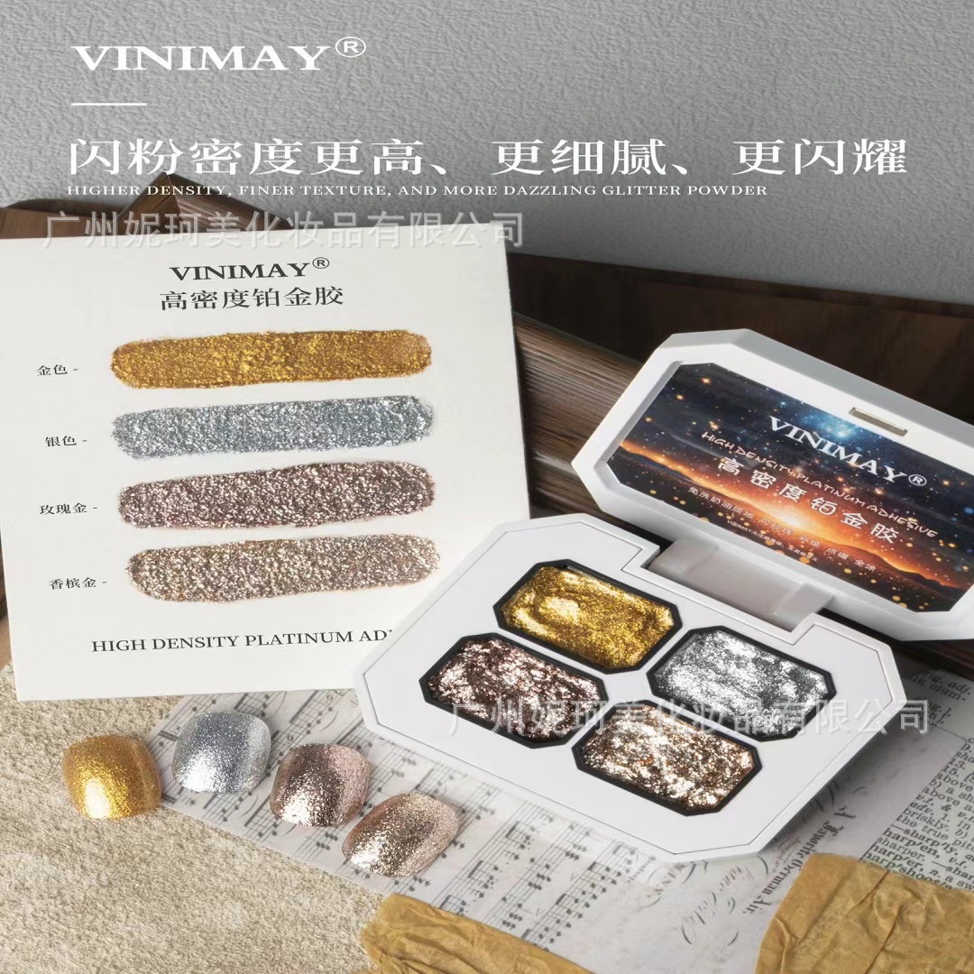 VINIMAY四色高密度铂金胶免洗拉线彩绘爆闪铂金新款四宫格甲油胶