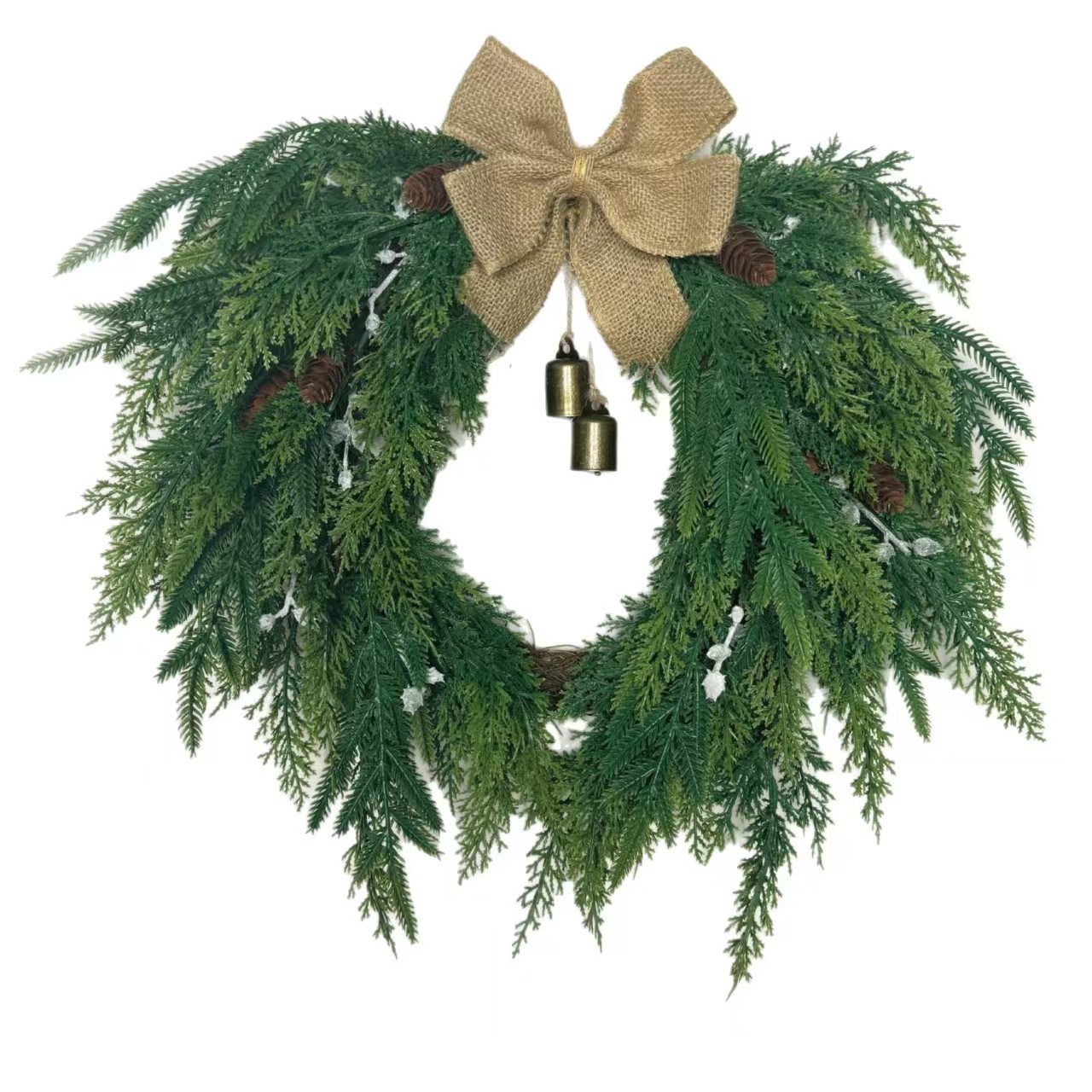 批发新品跨境热卖铃铛花环麻布大蝴蝶结圣诞节门挂壁挂家居装饰品