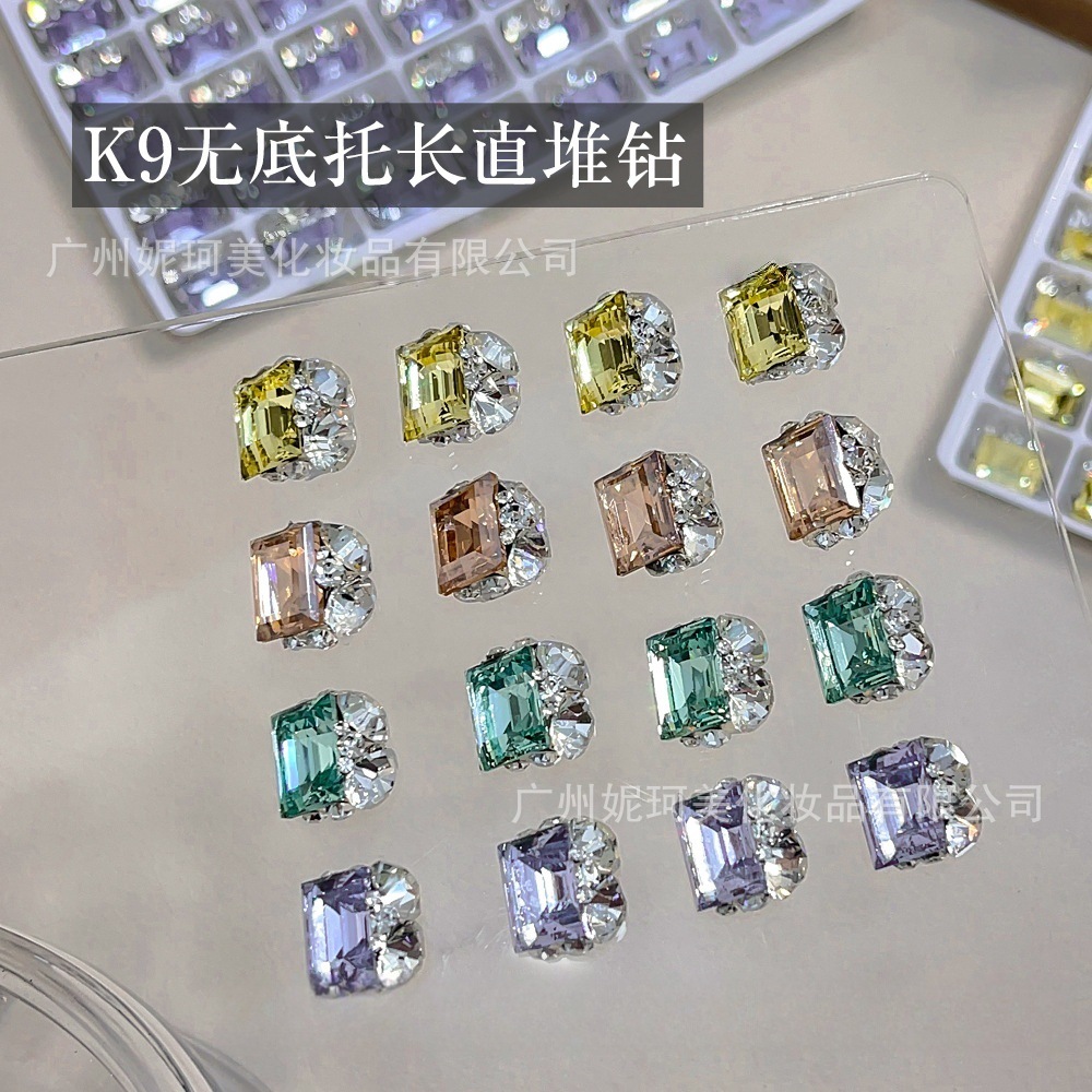 新款K9美甲堆钻饰品无底托轻奢百搭长直角水晶紫美甲钻球配饰成品